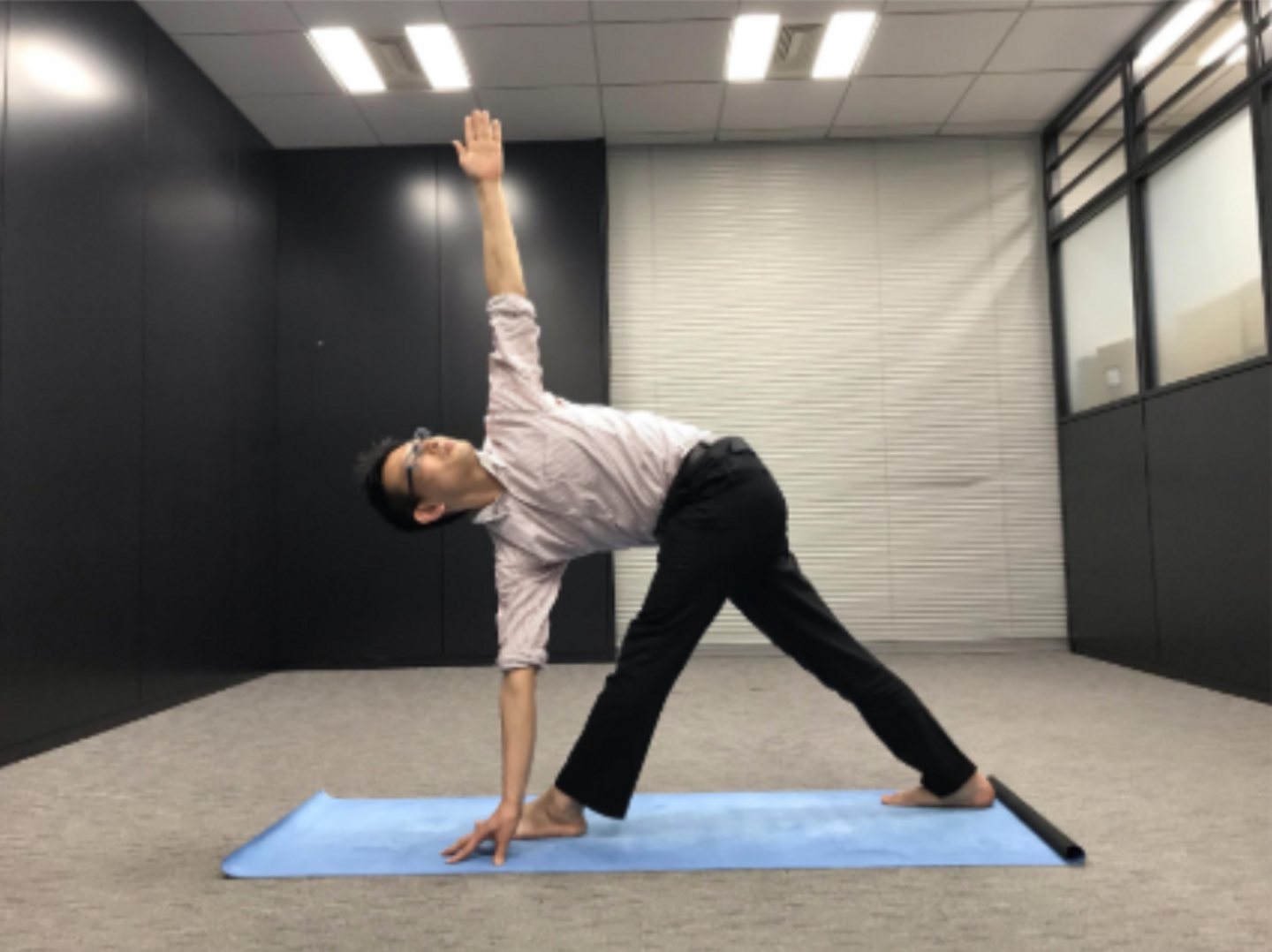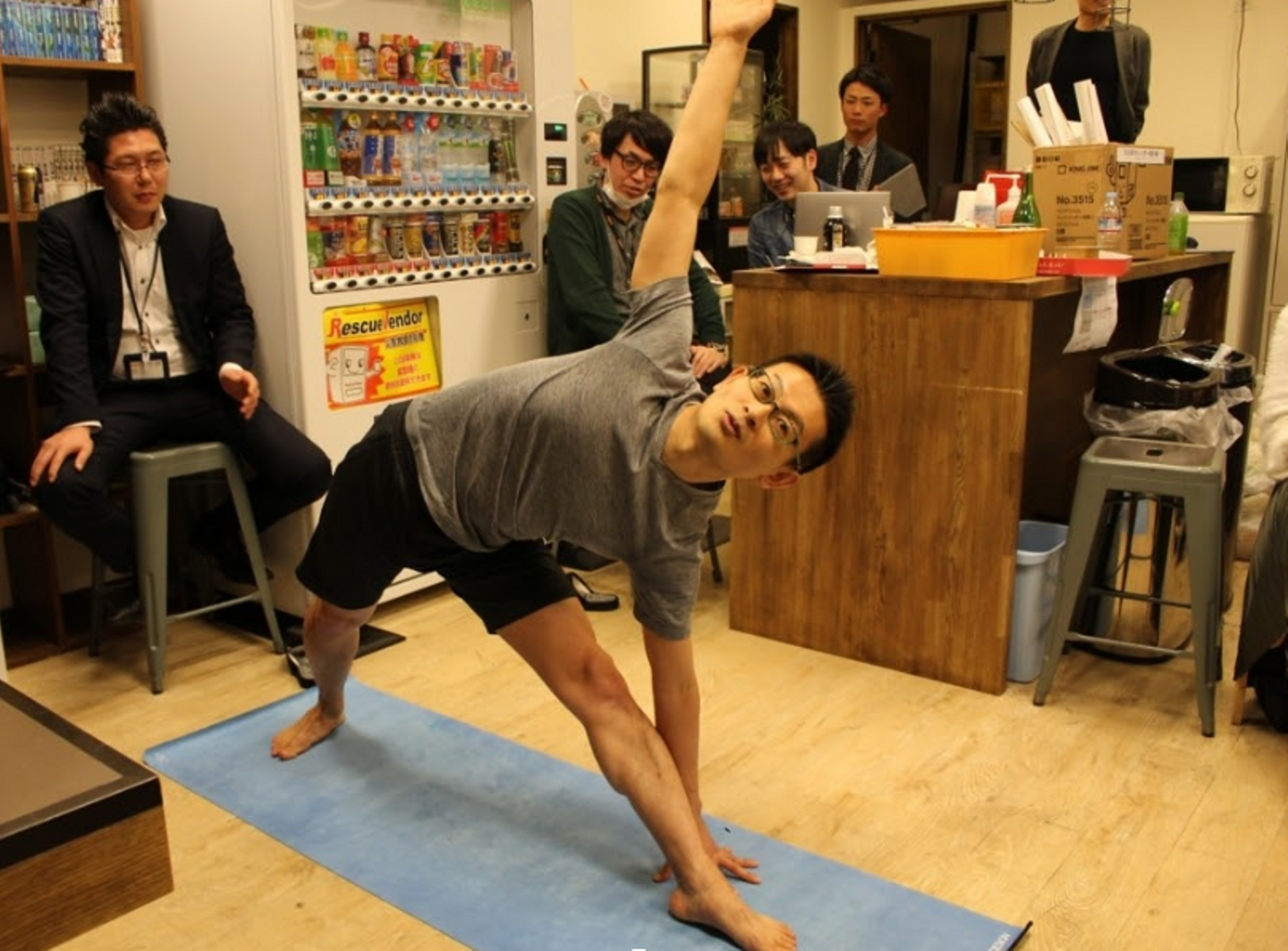 以前、社内LT大会の「うる水」でヨガについてアツく語ってくれたりもしましたし、NJSS事業部の全体朝礼では"ざきさん"主導で朝ヨガをやったりもしています。
