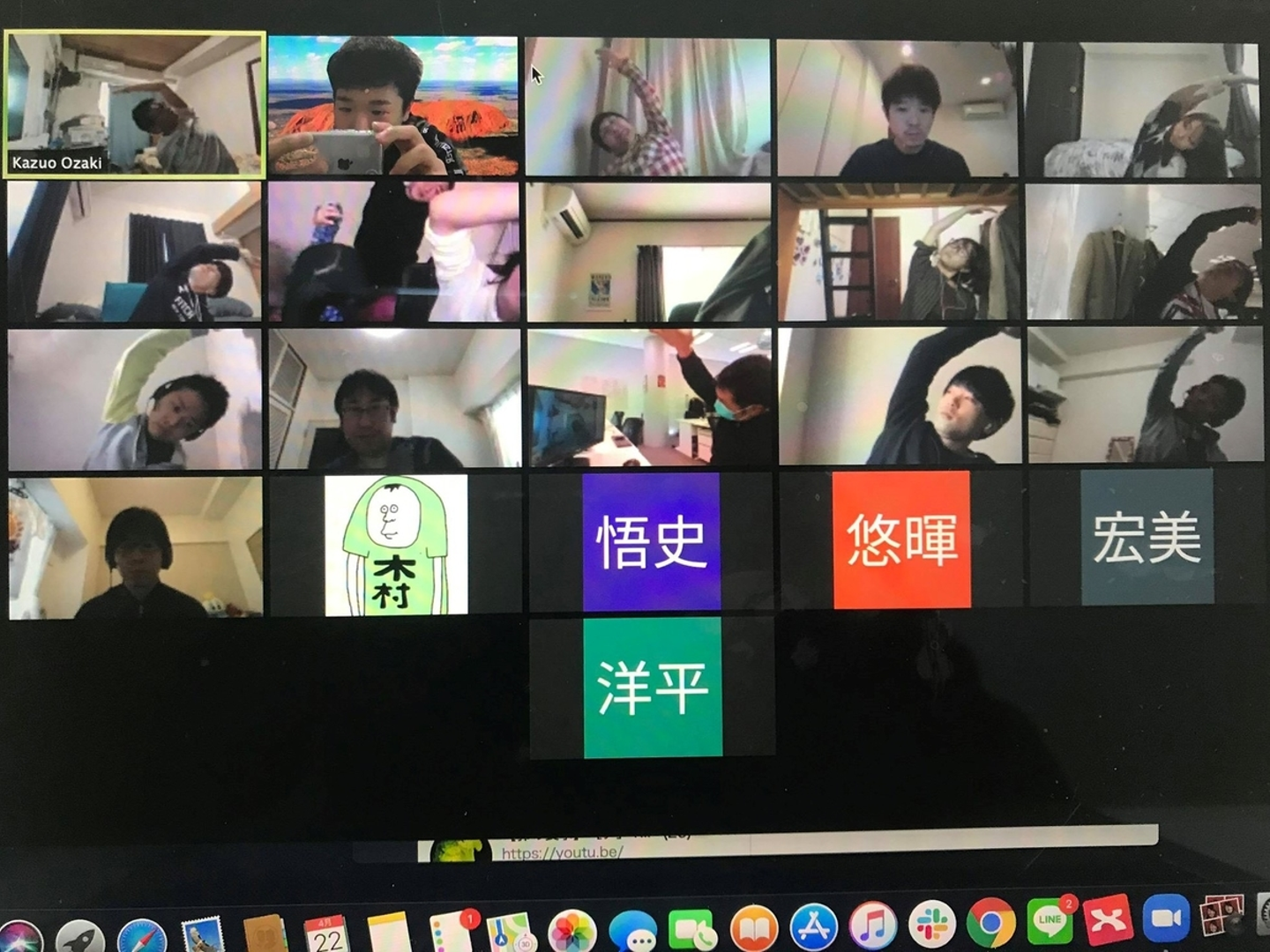 「朝10時にざきチャンネルで10分ヨガをzoomで実施。ざきさんいかがだろうか」