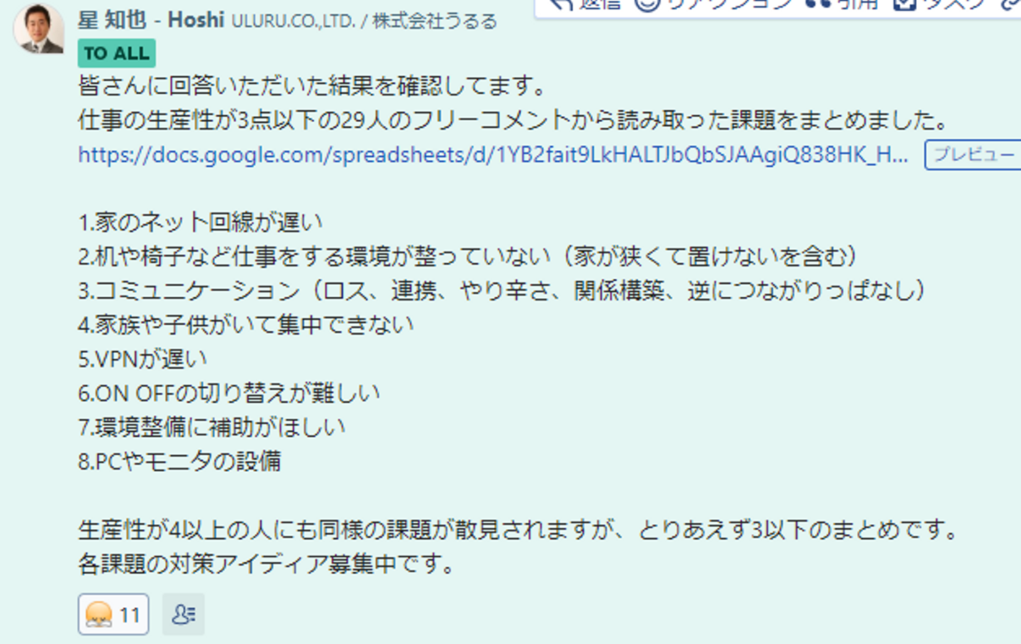 そこで、星が以下チャットを更に全社に投げました。