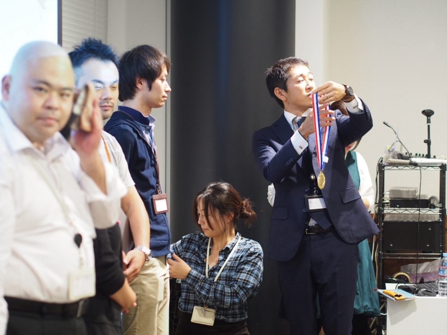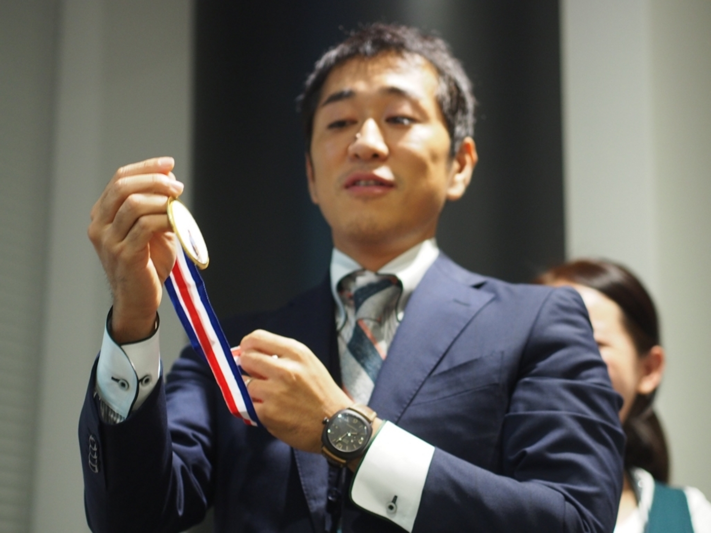 表彰者は、仕事で関わっているメンバーからの労いの言葉が書かれた金メダルを授与されます。