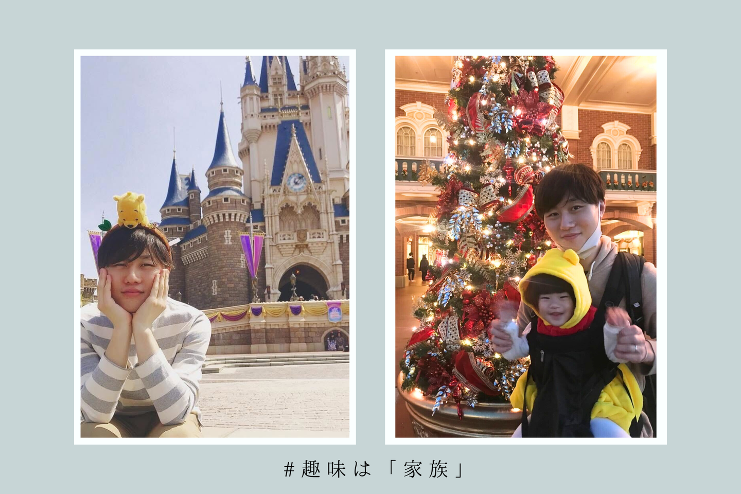 結婚前は演劇やドラムを演奏したりと、アクティブに過ごしていたのですが、結婚して子どもができてからは、家族と過ごす時間が一番の趣味になりました。休日は家族で公園に行ったり、ディズニーランドに行ったりすることが多いですね。特にハロウィンの時期は、毎年必ずディズニーランドに行っています。
