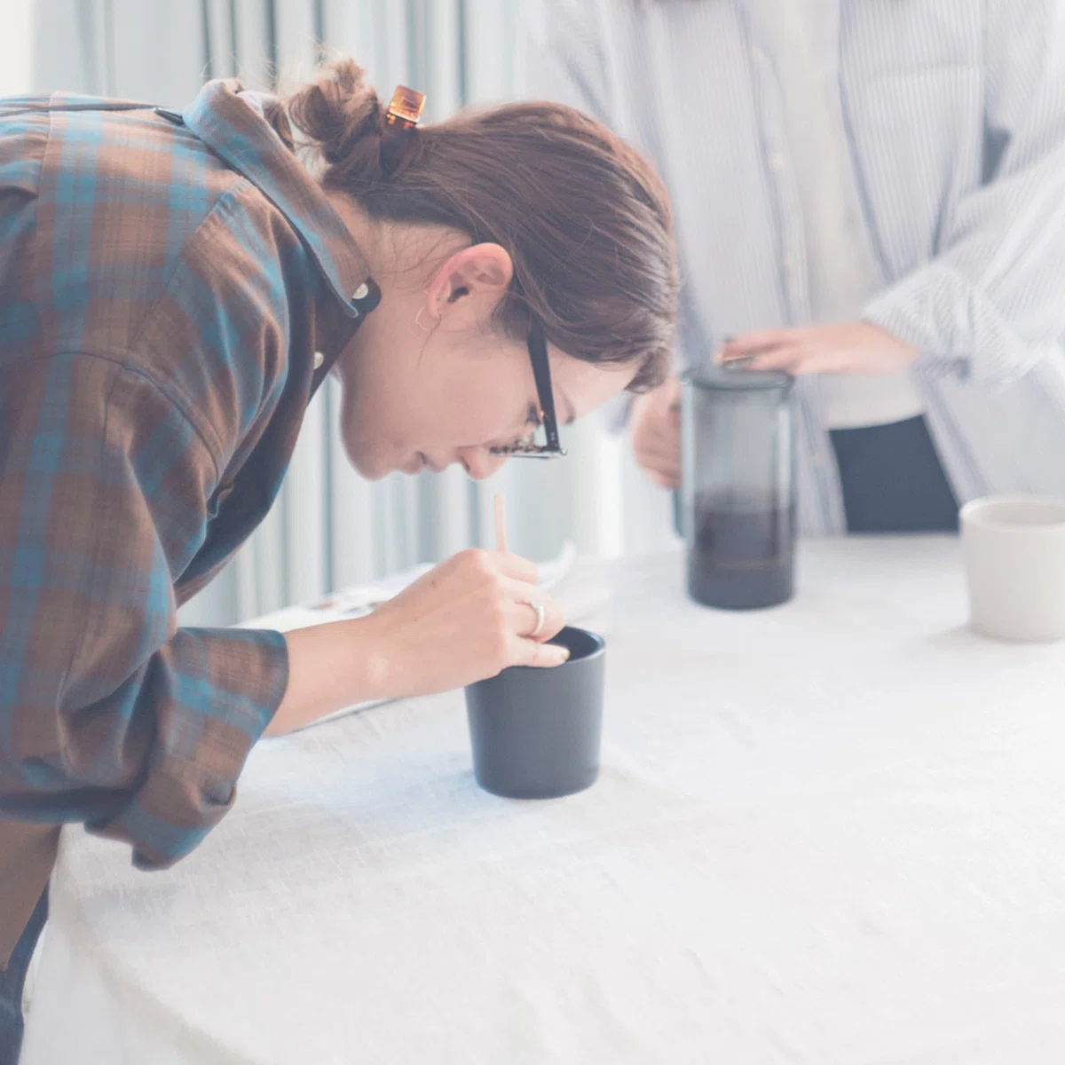 2025年カタログのとあるカットでは、テーブルに置かれたコーヒーカップのシーンが登場します。コーヒーの泡がなんだか顔のように見える、そんな何気ない日常のシーンを撮りたいと、事前にディレクションとして決めていました。
