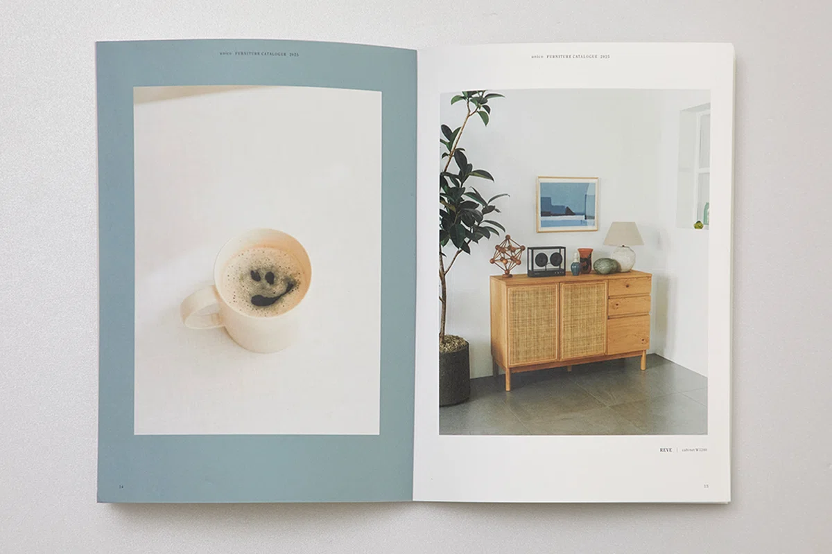 毎年2月に発行している、unicoの家具カタログ。新商品を中心としたイメージ写真や、全商品の一覧を毎年異なるテーマに沿って掲載しています。
