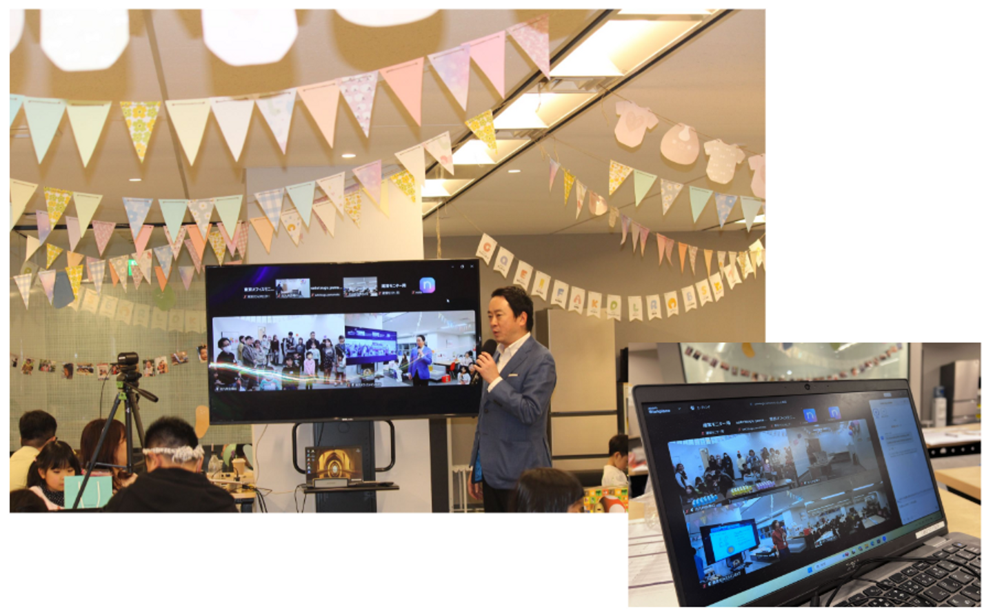 その上で、今回のUnifa Dayでは新たな挑戦として、東京オフィスと北九州オフィスをリアルタイムでつなぐ、というファミリーイベントとしては初の試みを行いました。