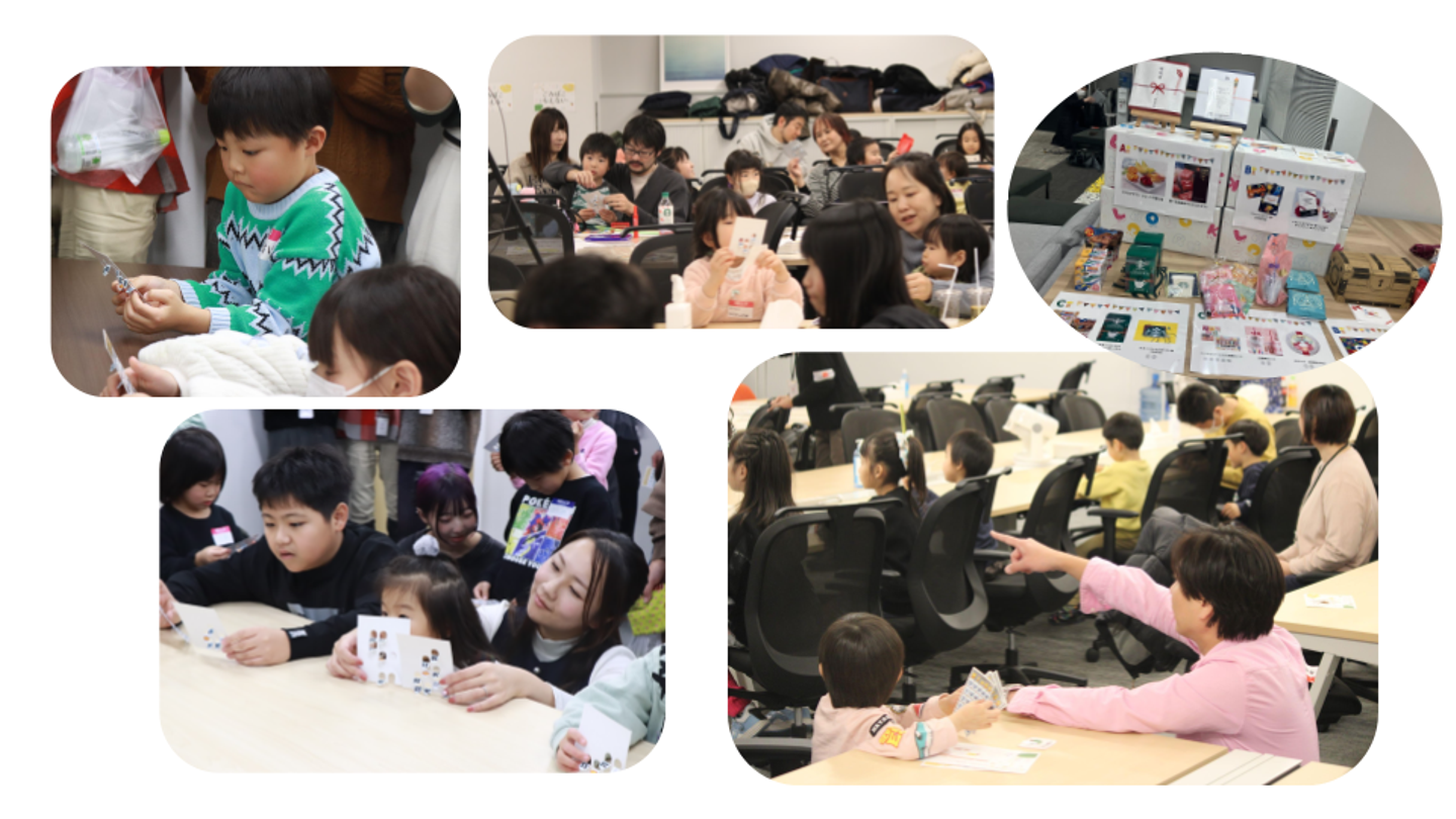 そして、会場がさらに白熱したのは、代表土岐さんからの豪華景品をかけた最後のイベント、「ビンゴ大会」!こちらも今回初めて取り入れた企画でしたが、豪華景品やお菓子の宝箱などを前に、こどもたちの目は真剣そのもの。