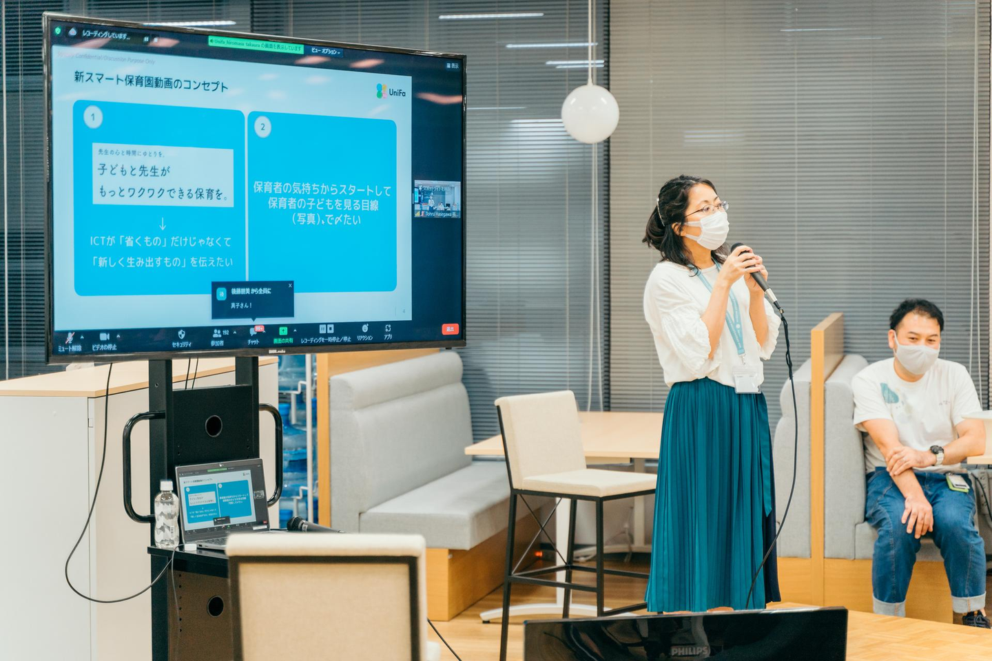 スペシャルセッションの最後は、リニューアルした「スマート保育園・幼稚園・こども園」動画のお披露目会でした。動画制作を担当したマーケティング課の小林から、動画のコンセプトや撮影時のエピソードをシェアしてもらいました。