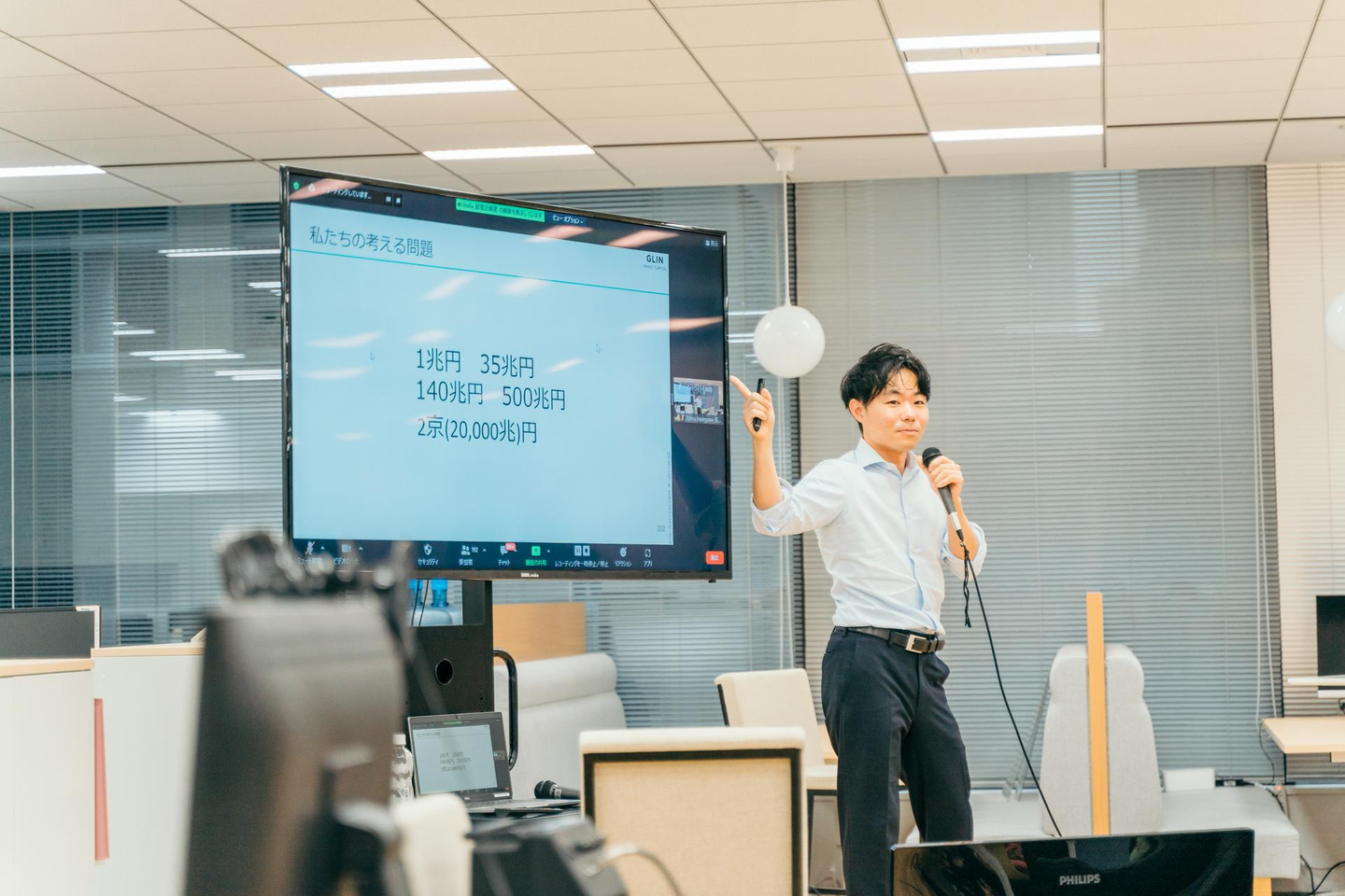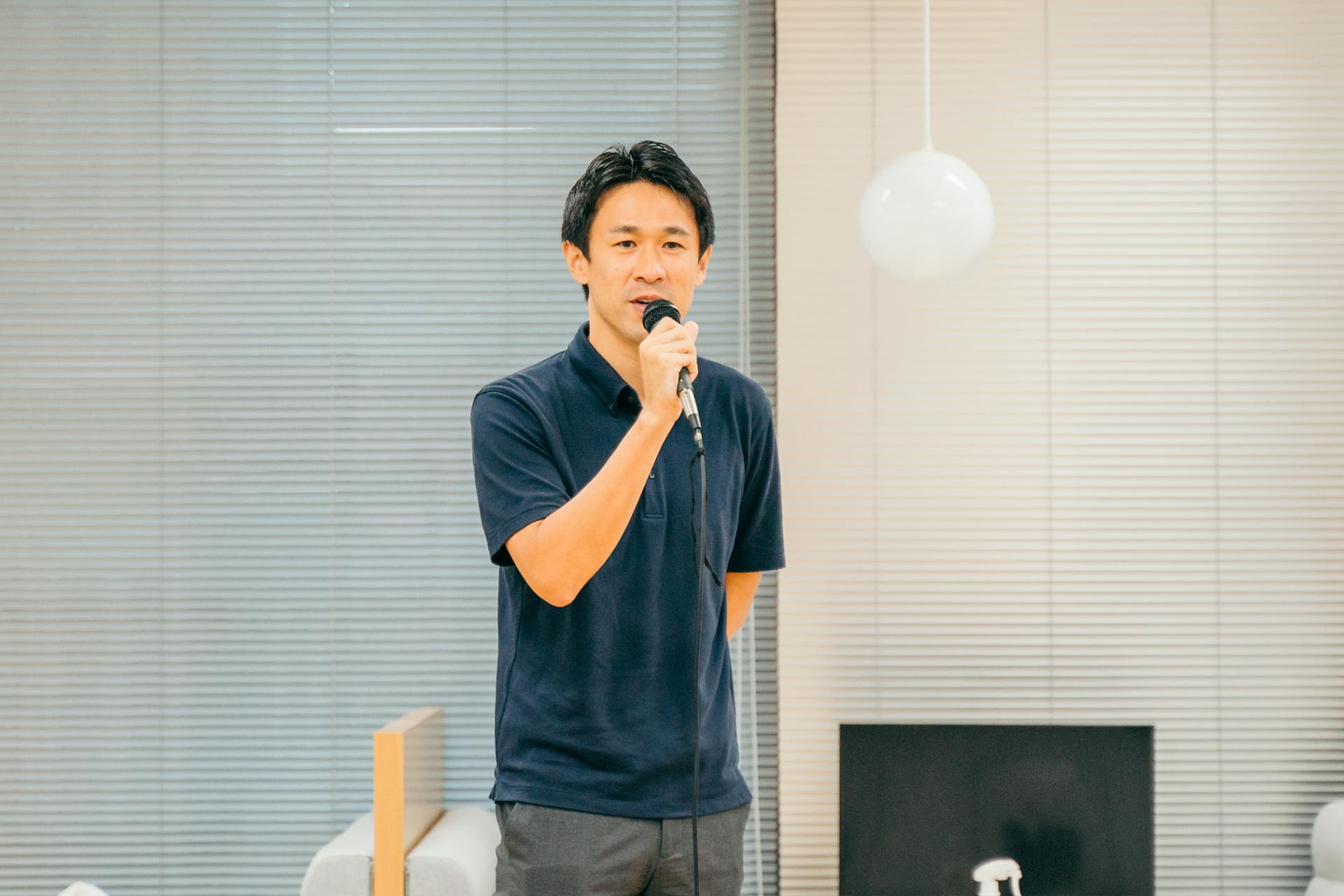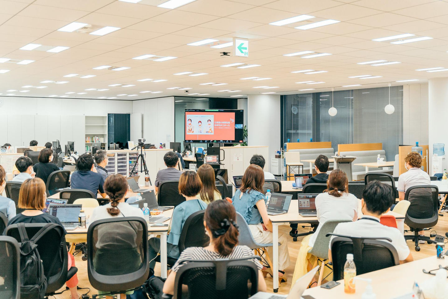 今回の全社総会は、オンラインとオフラインのハイブリッド形式で開催しました。プログラムの前半は、CEOの土岐よりFY21の振り返りとFY22の戦略全体像に関するスピーチでスタート。「これまで」と「これから」我々は何を目指していくのか。会場全体も土岐の話に集中して耳を傾けていました。