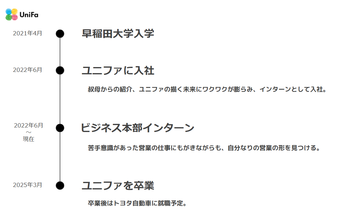 【25年卒業インターン生による連載企画 Unifaインターン奮闘記(全3回)】卒業生2人目 杉田芽季 『人生を変えてくれたユニファへ:約3年で得た財産の数々』