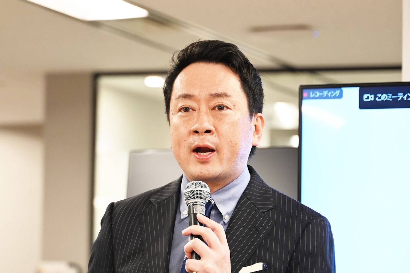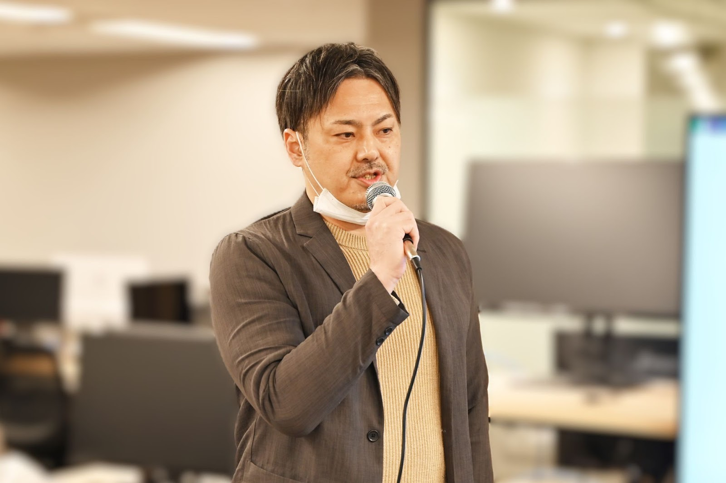 式では、代表取締役の土岐より多田さんへの歓迎と、社員全員に向けた力強いメッセージが届けられました。