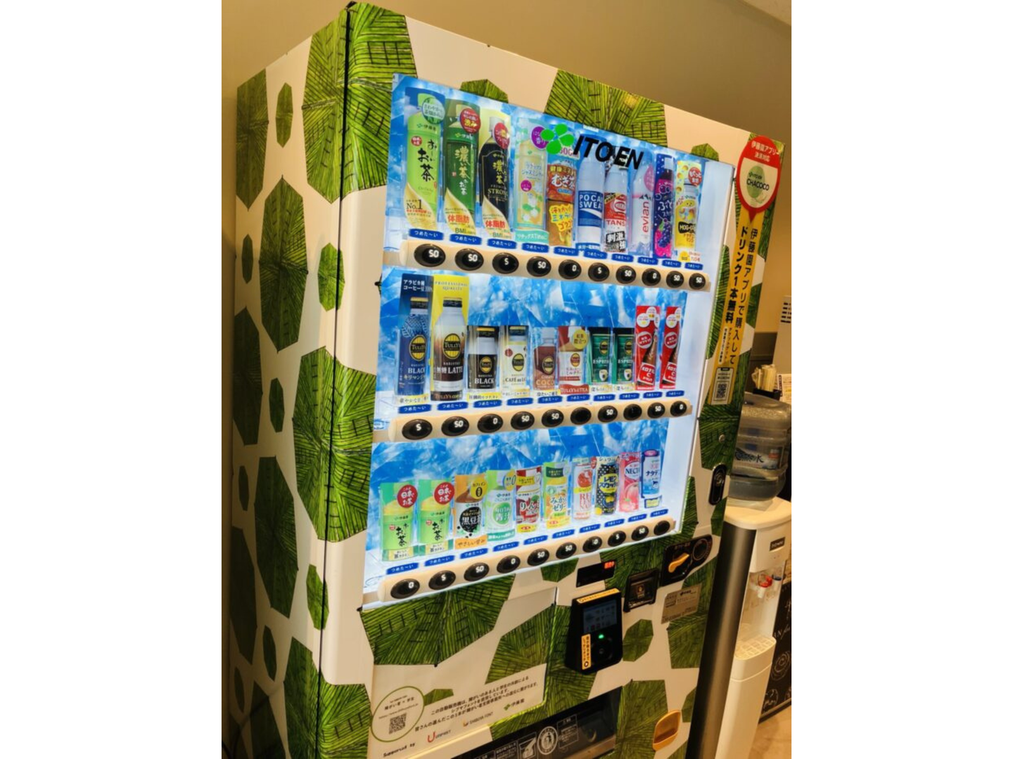 その象徴が、ラウンジに設置された一台の自動販売機。 ここで飲料を一本購入すると、その売上の一部が福祉施設に寄付される仕組みになっています。この自動販売機にデザインされているアート(シブヤフォント)は、障がいのある方とデザインを学ぶ学生さんが共に創り上げたもの。