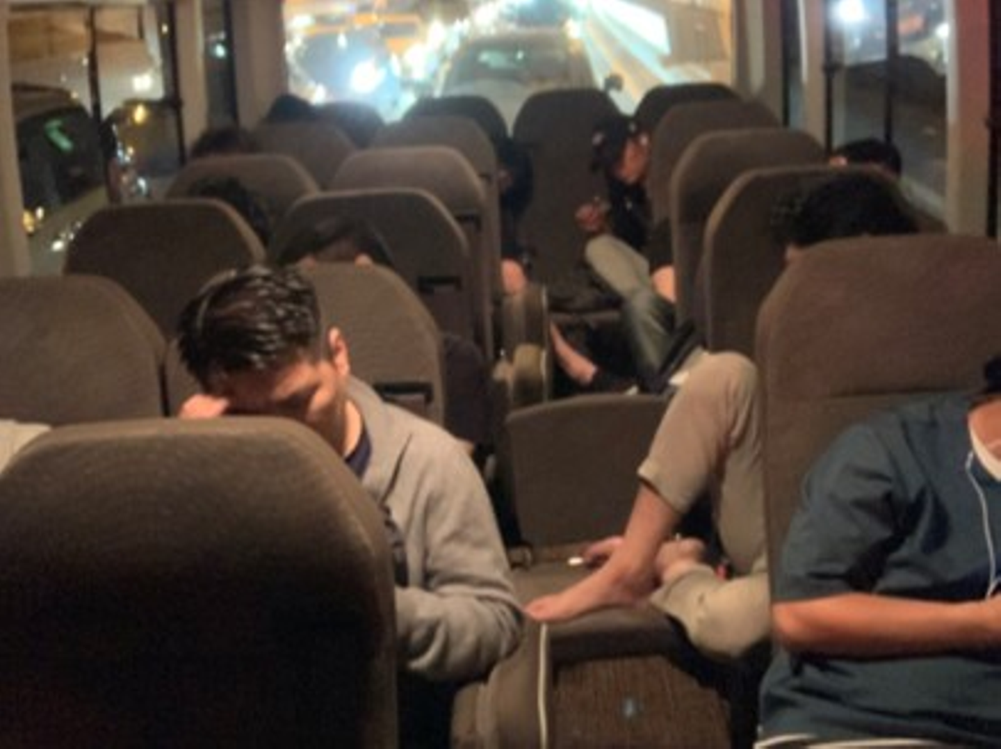 ↑ 帰りのバスの中。渋滞に巻き込まれたこともあって、長時間のバス移動にぐったり。帰宅は深夜になった模様。。。ホント、みなさんお疲れさまでした!
