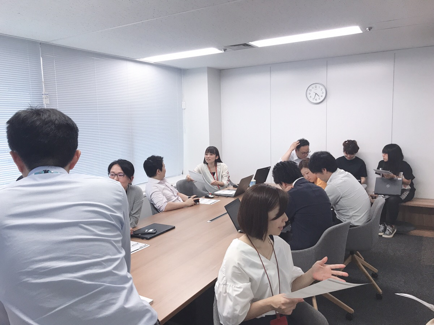 ケースステディの中の主人公が自分だったら、また同僚だったら「どうする?」そんな意識で各々が発言しあい、意見交換しています。