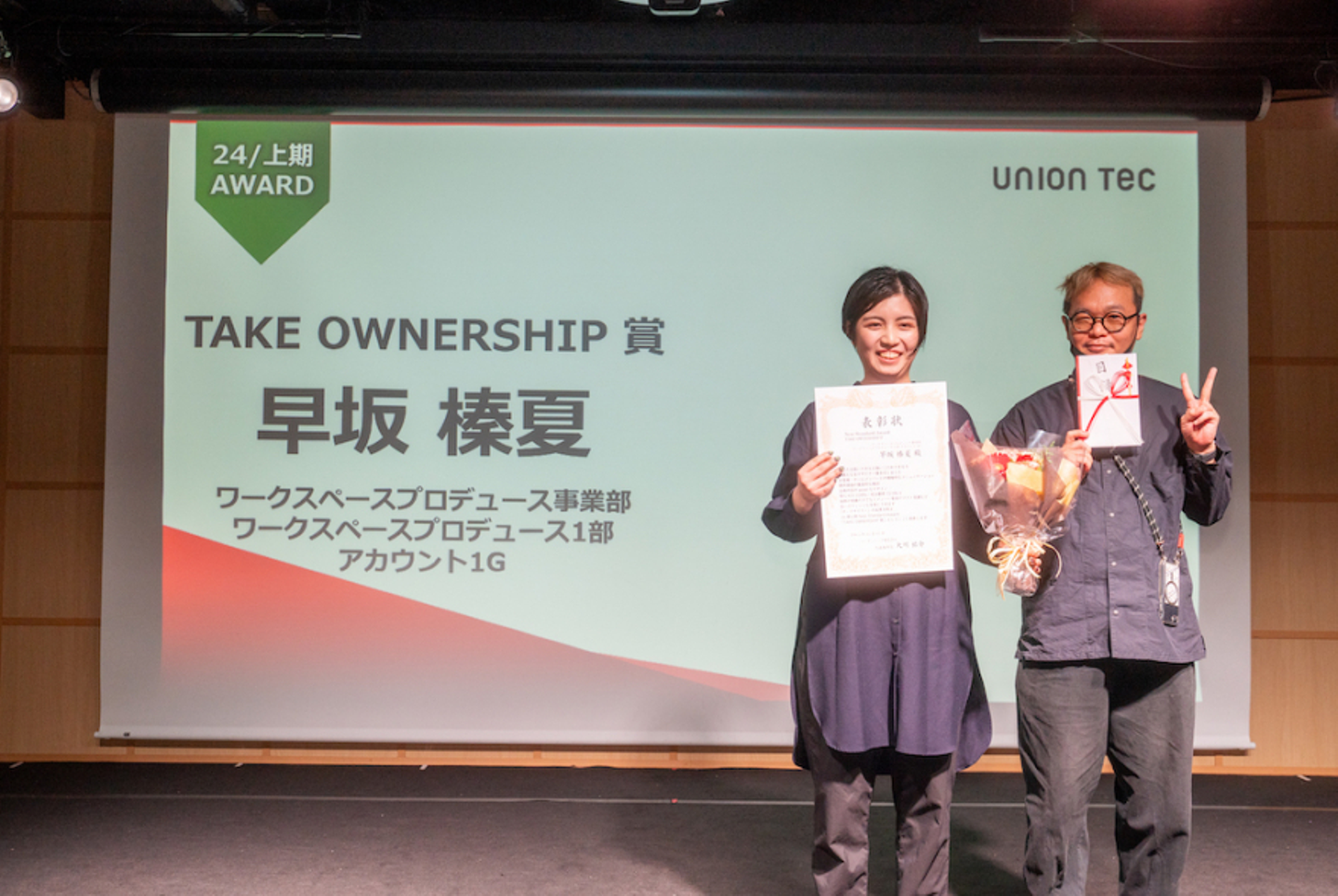 こうして、24期上期アワードは終演。意識高くお客様や社内と向き合う社員に、大いに刺激を受ける催しとなりました。同じ時間を共有し、足並みを揃えたユニオンテック。UT100へ、さらなる一歩を踏み出します。