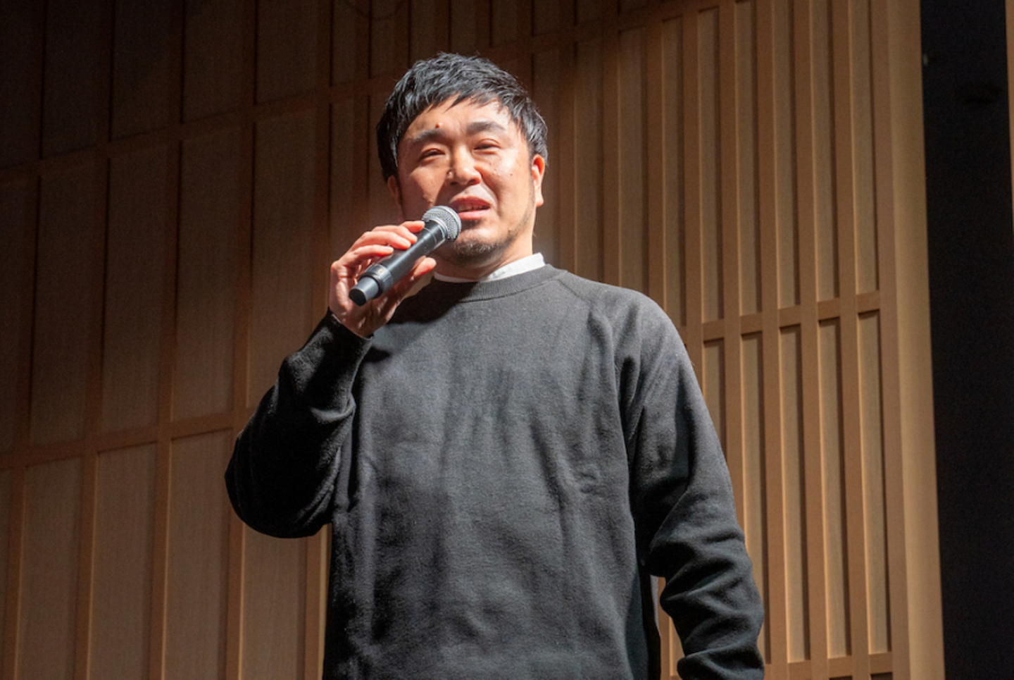 さらには、授賞式と同じくこの日の見どころとなった「パネルディスカッション」も。24期上期にユニオンテックが担当したキャシュモグループ様の案件について、同社のご担当者1名と、ユニオンテックのプロジェクトディレクター、デザイナー、施工管理の3名が登壇し、大川の進行のもと“プロジェクトの裏側”を語り合う場が設けられました。