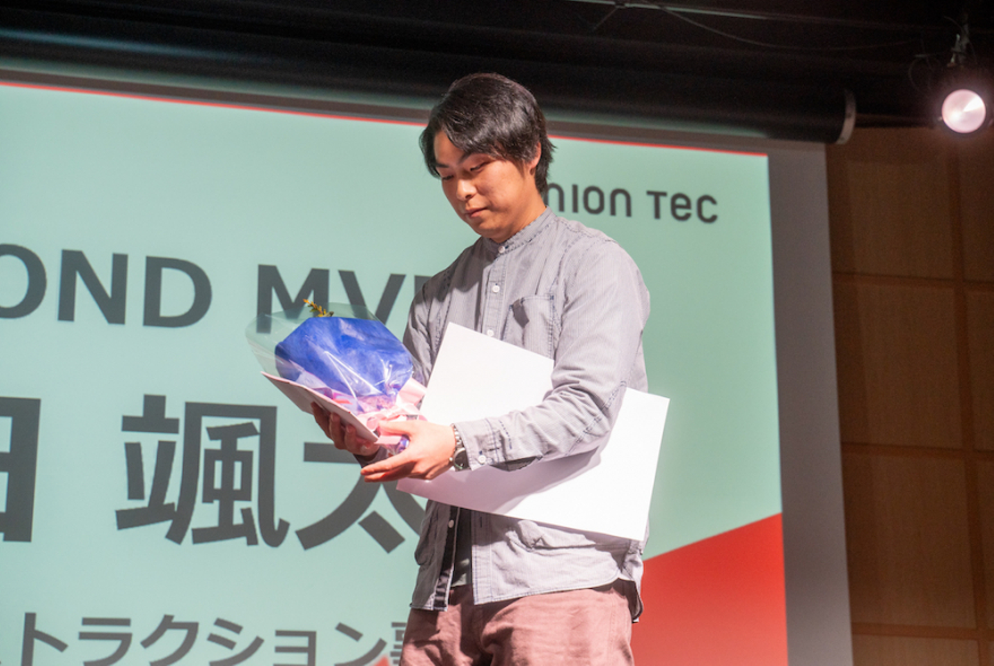 アワードの中でもメインコンテンツである「New Standard Award授賞式」は、バリューを由来とする「MOVE FAST賞」、「NO LIMIT賞」、「TAKE OWNERSHIP賞」のほかに、バリューすべてを持ち合わせた人に贈られる「GO BEYOND MVP賞」という4つの賞が設けられ、選ばれた5名が順に表彰されました。この授賞式は、上記ミッションを果たすために定めた3つのバリュー「Move Fast(世界一早く)」、「No Limit(自分史上最高)」、「Take Ownership(私が責任者)」を、より体現していた社員に向けたもので、今回は24期上期(2023年6月〜11月)が対象となります。