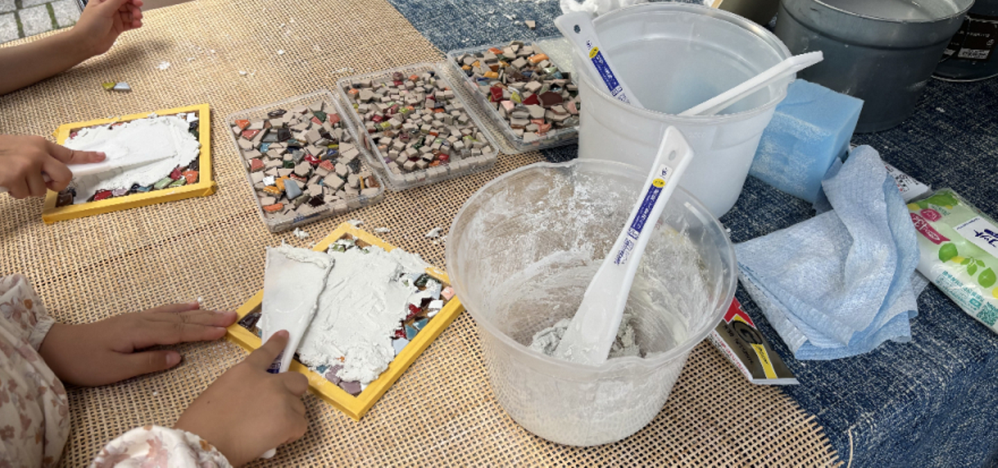 特に壁紙やタイルを使ったアート作品作りのブースは大人気で、事前予約の枠がすぐに埋まり、当日参加の枠も開始直後に満員となるほどの盛況ぶりでした。