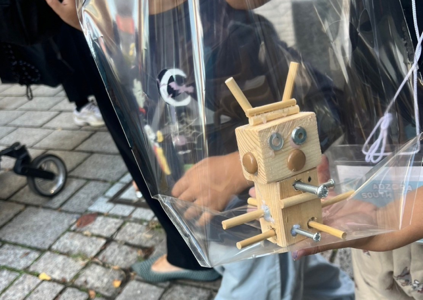 ユニオンテックが出展したのは、子どもたちがさまざまな職業を体験できるイベント「AOZORA South Town」。キッザニアのようなコンセプトで、子どもたちが仕事のリアルを感じながら街づくりに参加するという趣旨のもと、東京・自由が丘の九品仏緑道で行われました。このおしごと体験コーナーは、「タイルアート」「壁紙アート」「木材ロボット作り」の3つのブースで構成され、子どもたちは職人のサポートを受けながらそれぞれ自分だけの作品を完成させました。