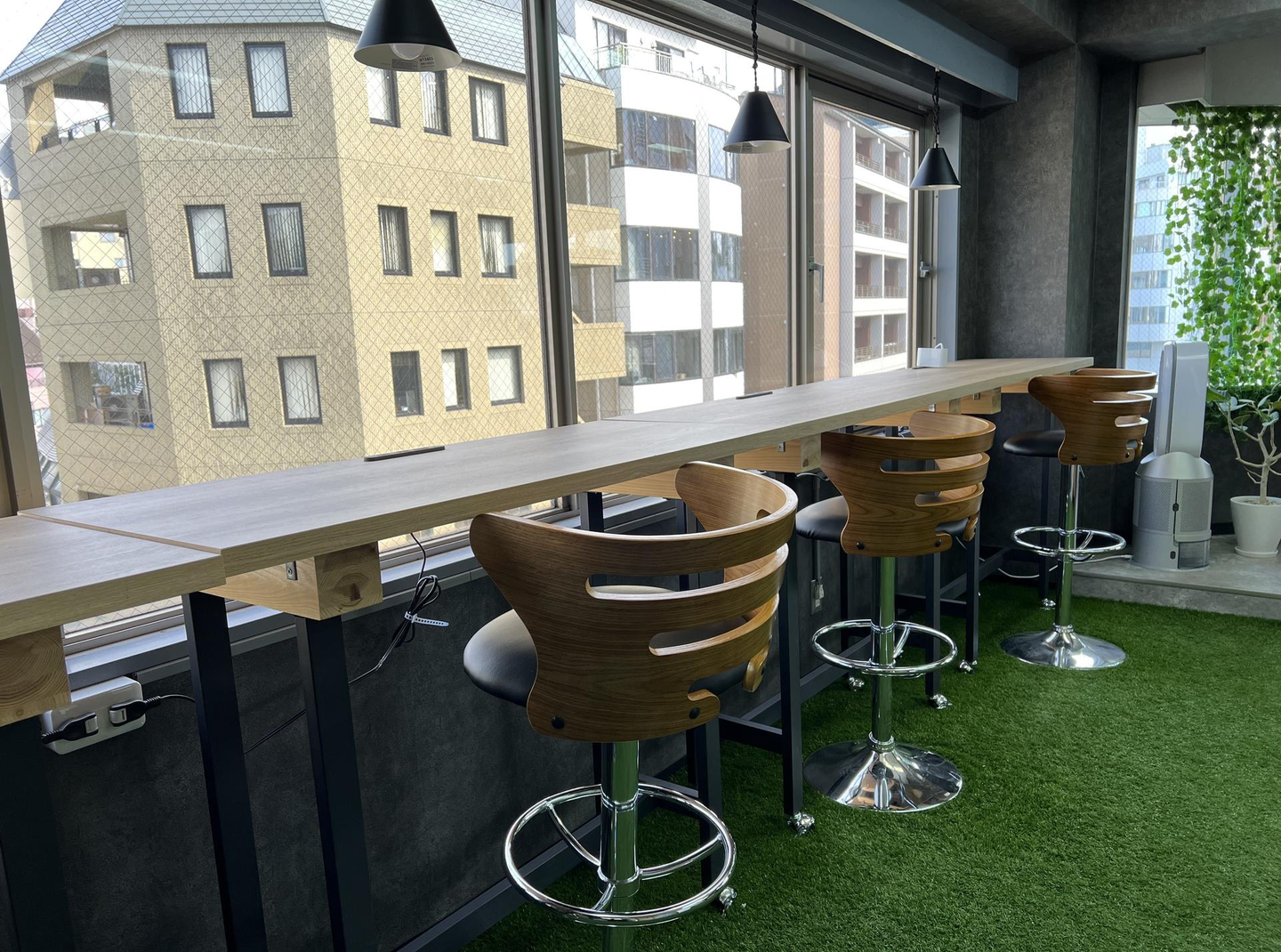 アンソリュートのオフィスで一際目を引くのが、芝生とこのカウンター席。