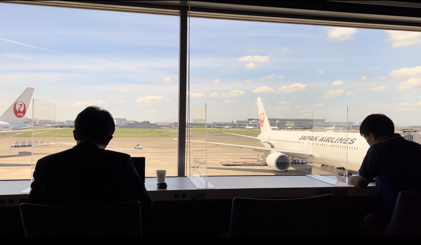 今回はフライト時間の関係から、始業時間に空港に集合しラウンジにて業務をスタート!