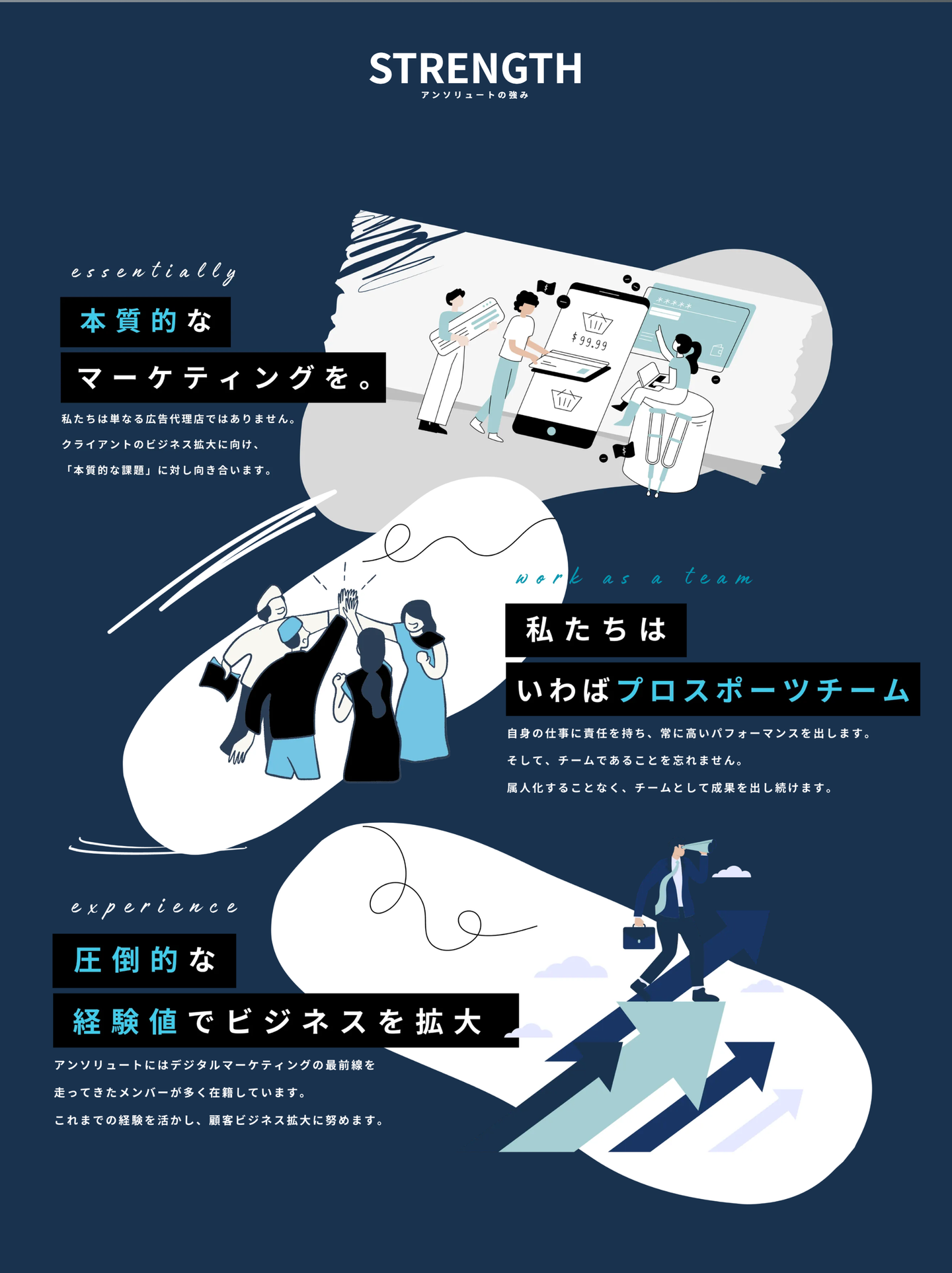 アンソリュートは「人生にもサステナブルを。」というパーパスを掲げ、デジタルマーケティング領域のスペシャリスト集団として企業の課題解決にコミットします。