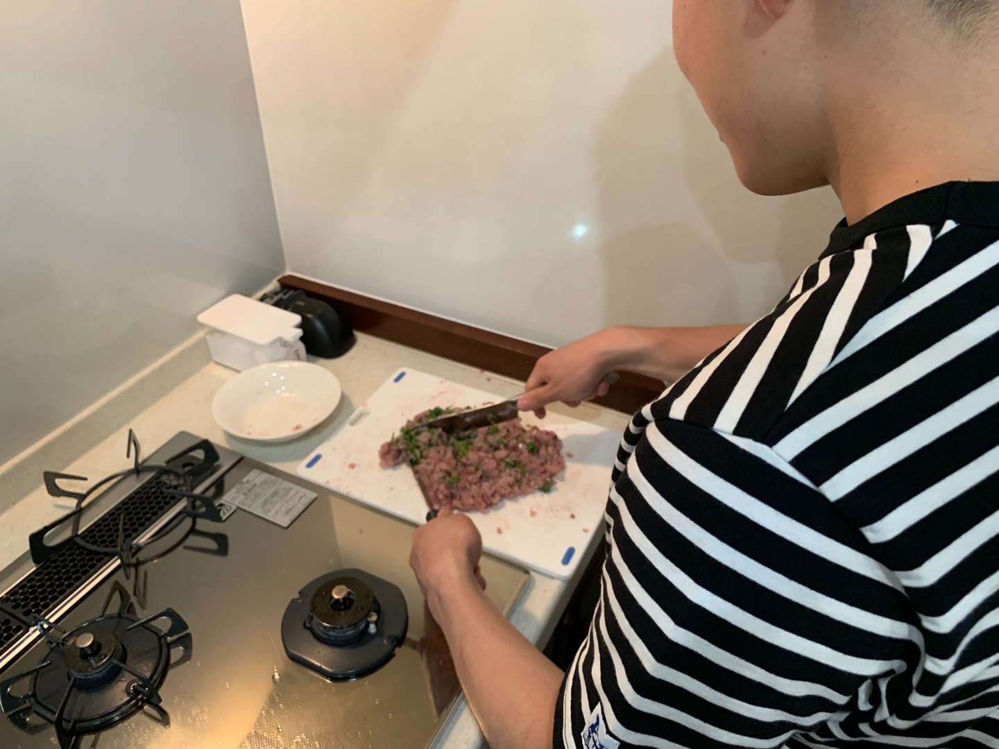こちらはアジのなめろうを調理しているインターン生の板垣くんと共に紹介します。