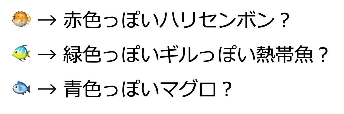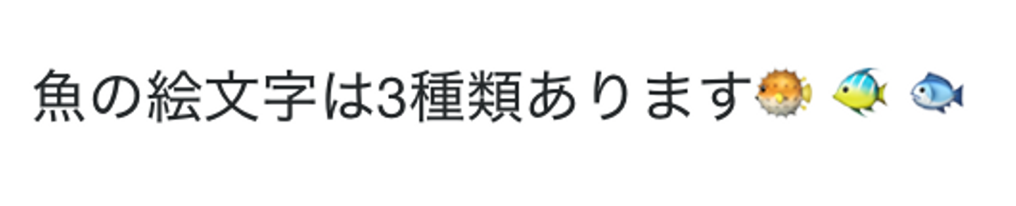 Macだと魚の絵文字は上の画像のように(🐡, 🐠, 🐟)の3種類あります。