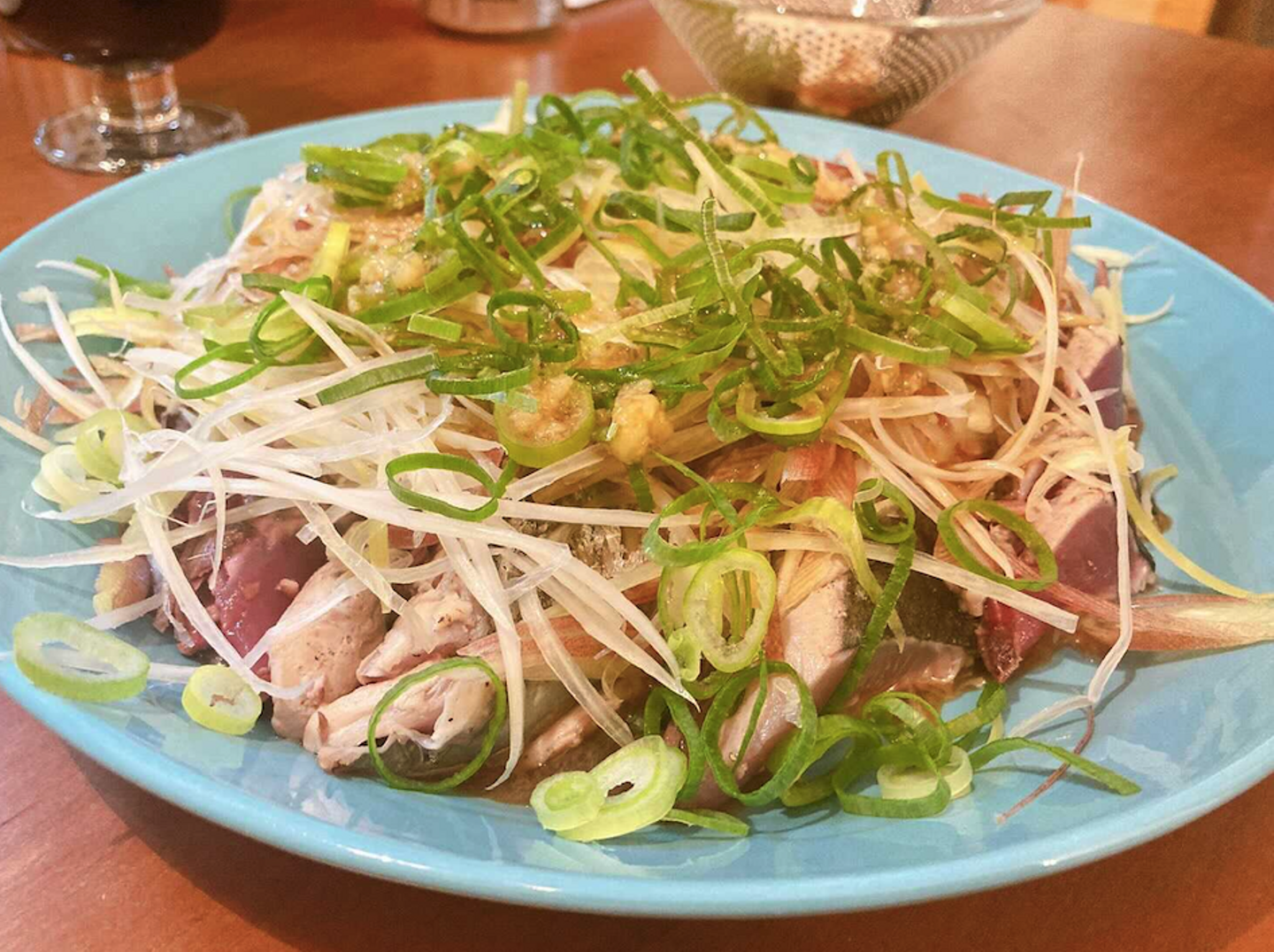 普段、目にするカツオのたたきよりも盛り盛りの野菜達!