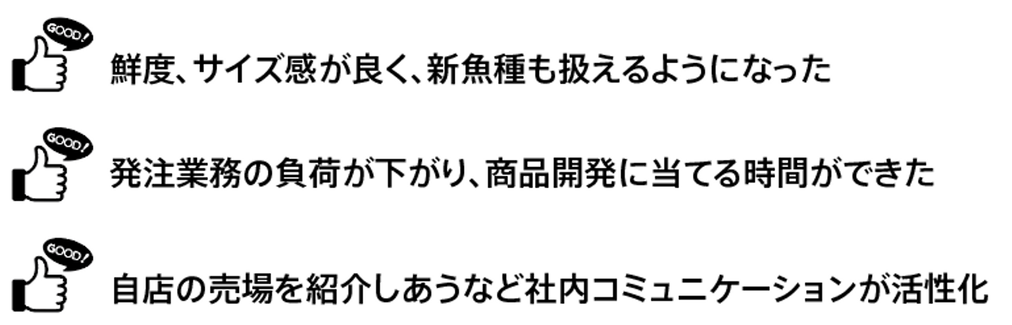 ウーオさんでは販促物の提供や、鮮魚キャンペーンも行えるので、各主任が自店の売場を紹介し合ったり、新規魚種については切り方 / 売り方ついて会話が進んだり、前から盛んだったコミュニケーションがより活性化した印象があります。