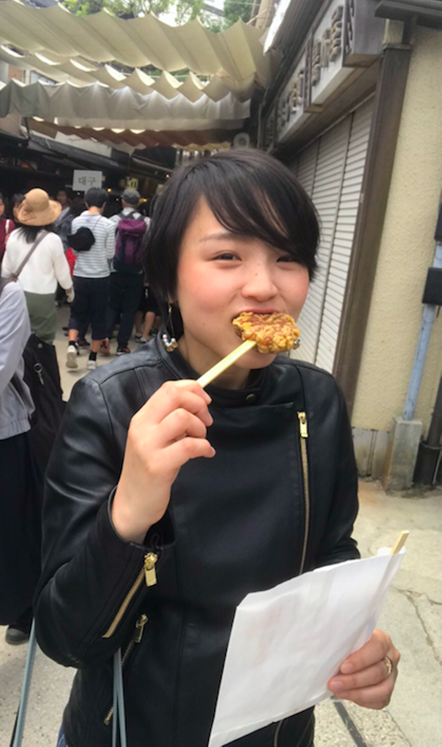 高校生の時に旅行で訪れた京都に魅力を感じ、京都の大学に進学、英語を専攻しました。