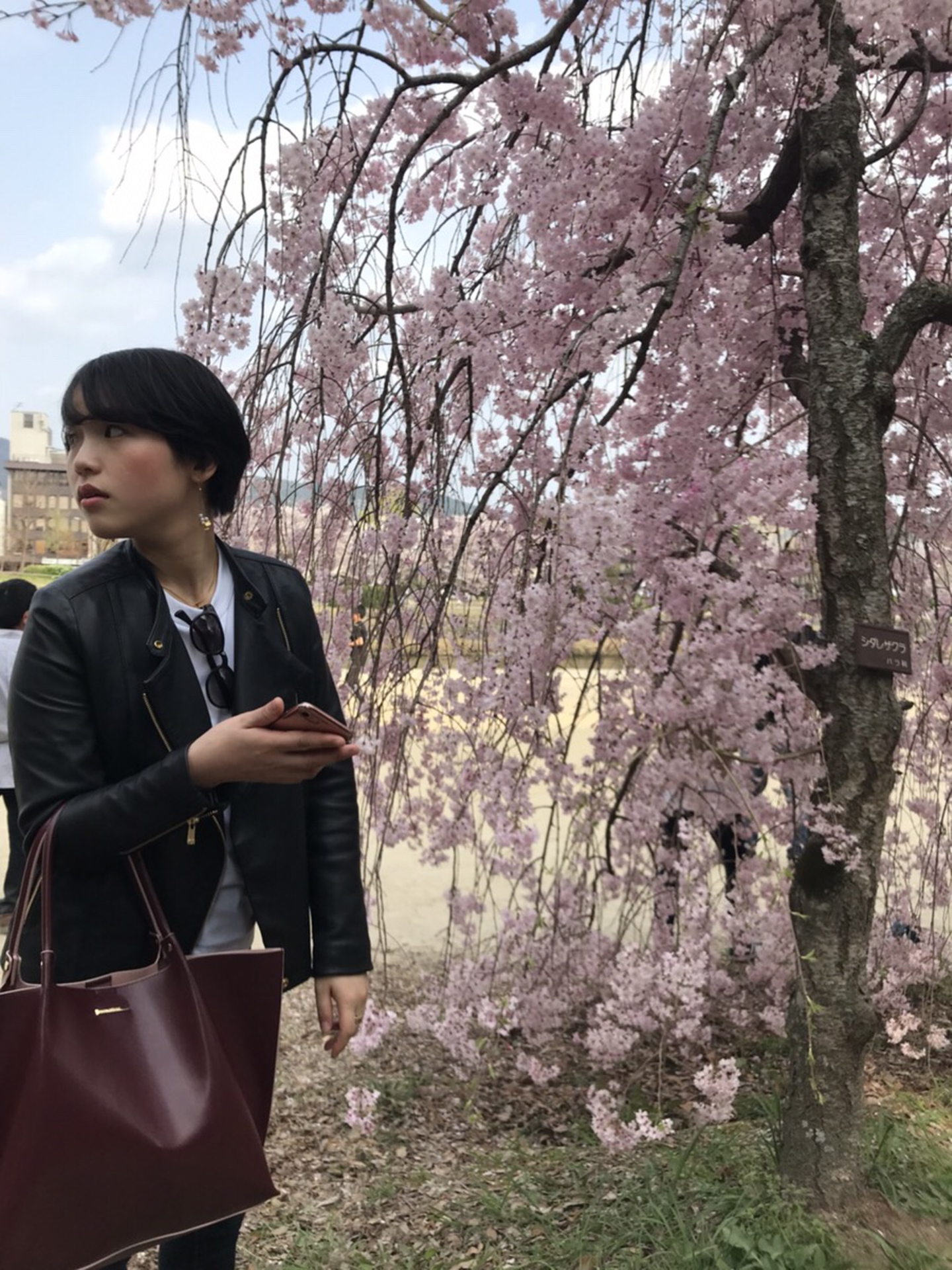 ↑桜をバックにパシャリ!そろそろお花見シーズンですね!