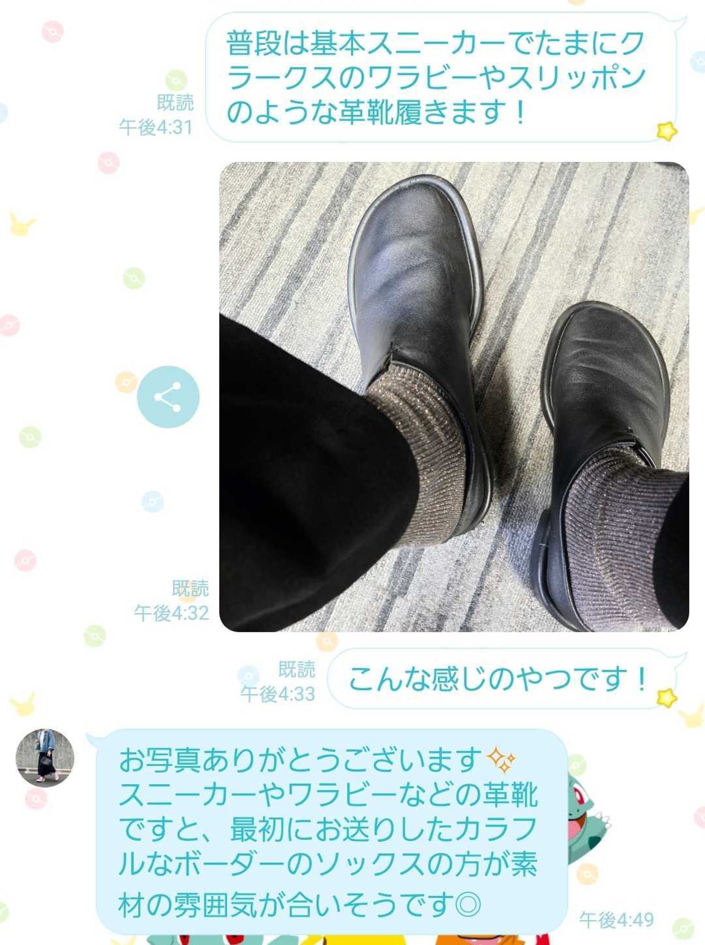 正直なところ靴下を購入する際に、接客を受けた経験がなかったため「こんな相談をして大丈夫かな‥」と少し心配だったのですが、丁寧な回答に感動しました!!そんな、やりとりの一部を抜粋してご紹介いたします。