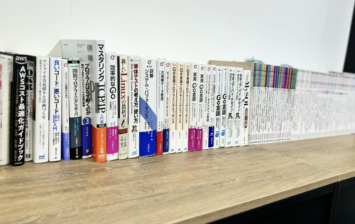 ちなみに、ラーニング制度を利用して購入した書籍は読み終わったらオフィス3階の本棚に戻す運用にしているので、他の人が読んだ書籍から学べることも多いと思います。