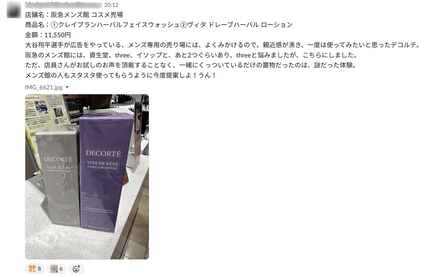 ▲購入した商品を接客の感想とともにSlack投稿すれば、補助を受けられる!