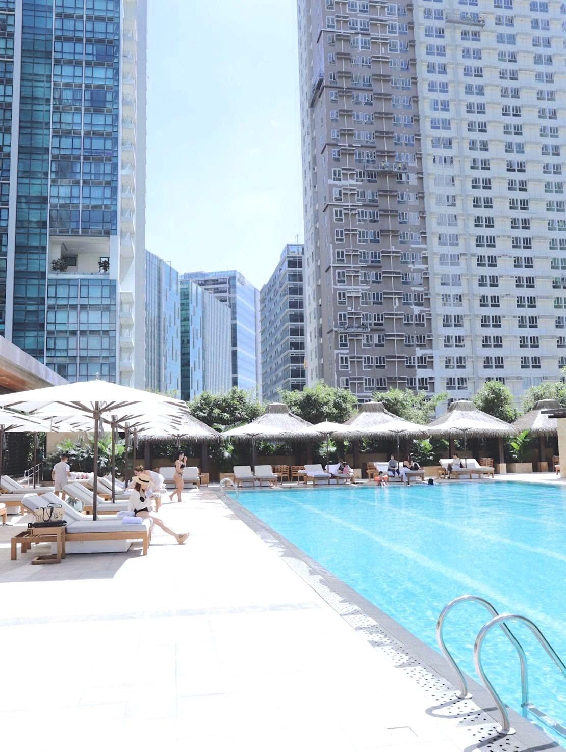 ホテル内には、大きなプールやジムがあり、高層階からは美しい夕日で有名なマニラ湾まで見渡すことができます。