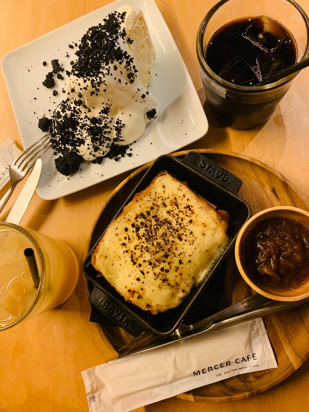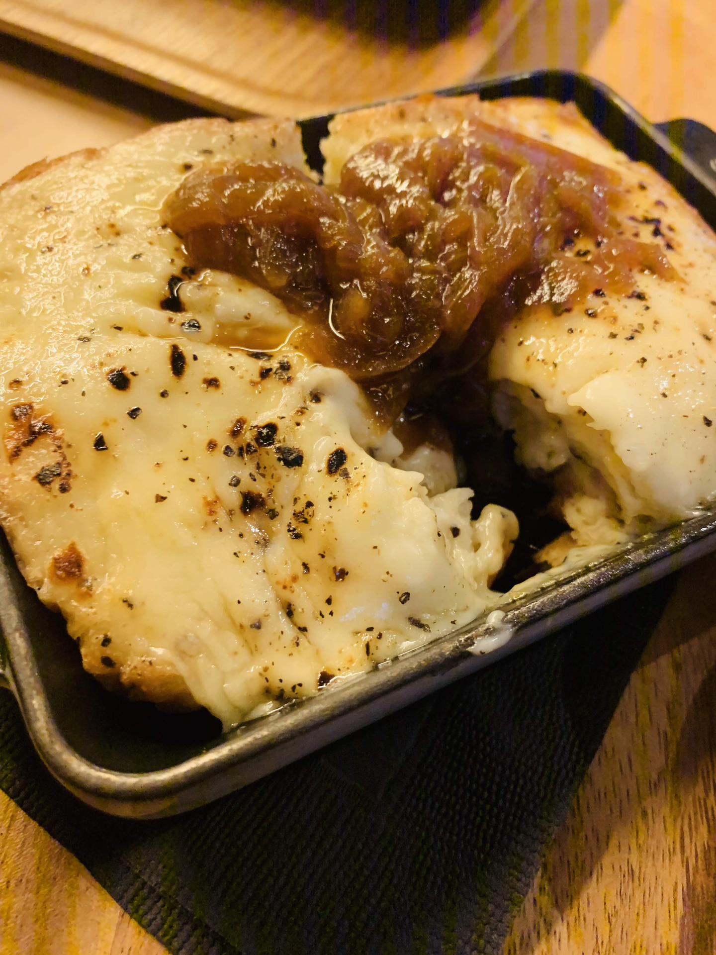 シフォンケーキを見送りオニオングラタントーストを選びました😋🍞