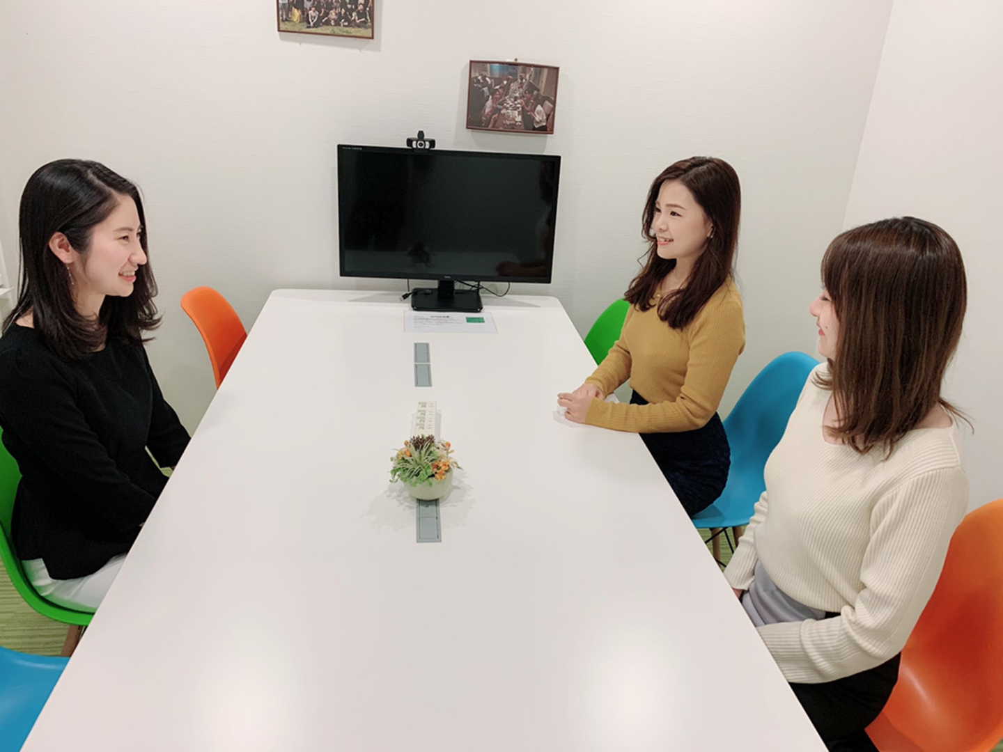それぞれが黙々と仕事をしている事が多いので、たまに雑談をすることも。