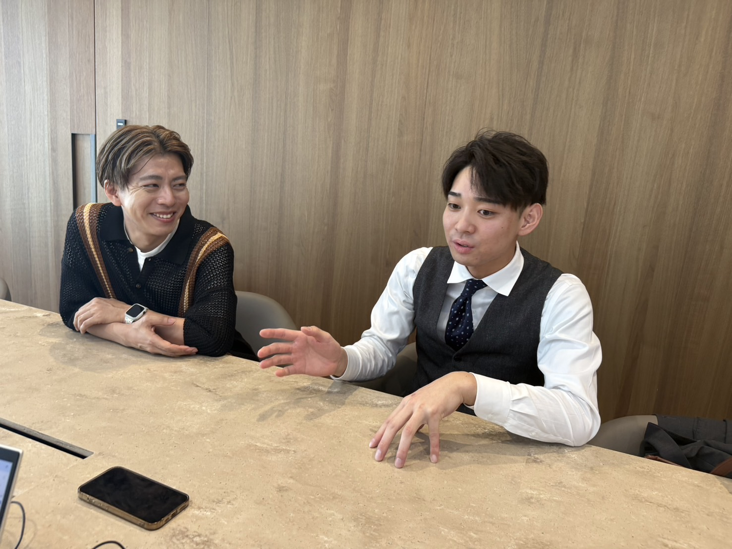 小田桐|渡邊さんのこれまでの経験を踏まえ、まずはバリュエンスが働きやすい環境であることを知ってほしいと思いました。さまざまな経験を積んできた人ほど、その価値を実感できると思います。だからこそ、過去のつらい経験も含めて、新卒の社員や同世代のメンバーに「バリュエンスが働きやすい」ということを体現してくれたら、それは何より心強いことだと感じました。他社での経験を持つ彼だからこそ、その違いを一番リアルに語ってくれるだろうと思ったのです。