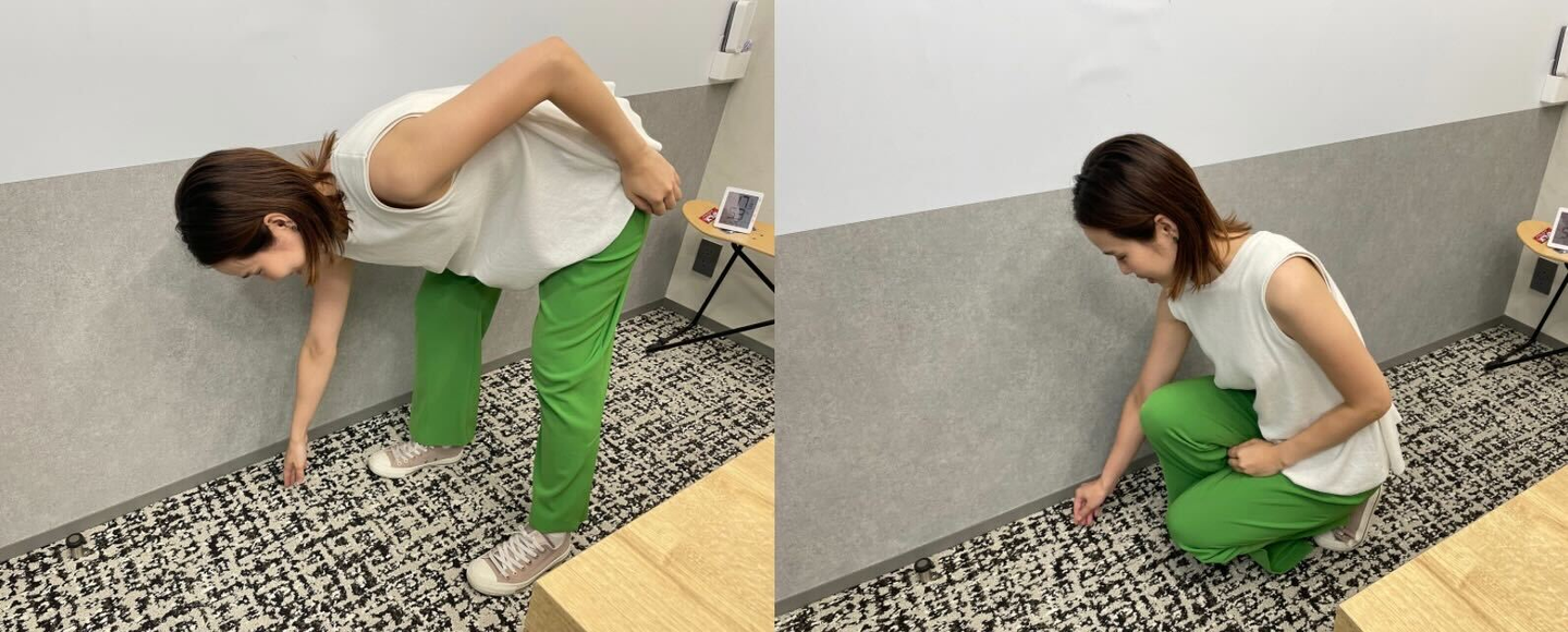 (↑美しいごみの拾い方を教えていただきました…!左が悪い例、右が良い例。ポイントはきちんと足を閉じてしゃがむことですね。美しい…。)