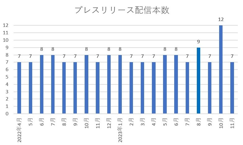 下記が私が広報担当になってから配信したプレスリリースの本数推移です。