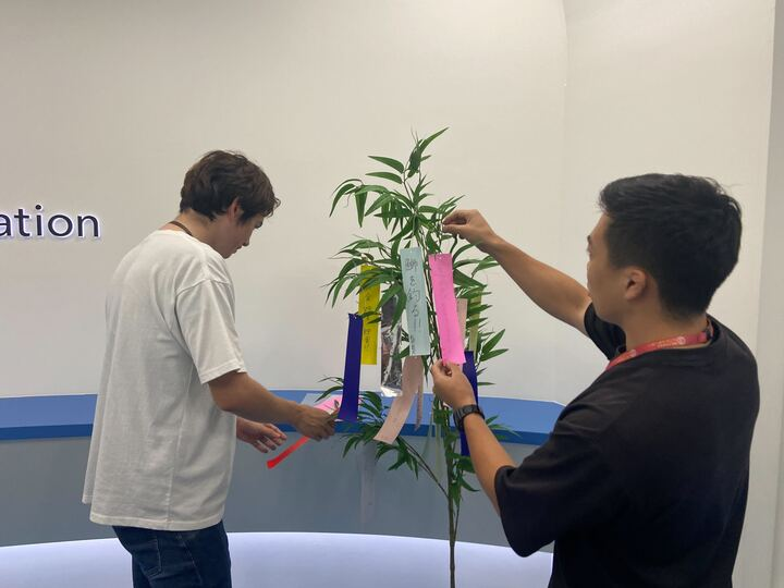 社員の切なる願いや想いが込められた短冊も飾られております🌠