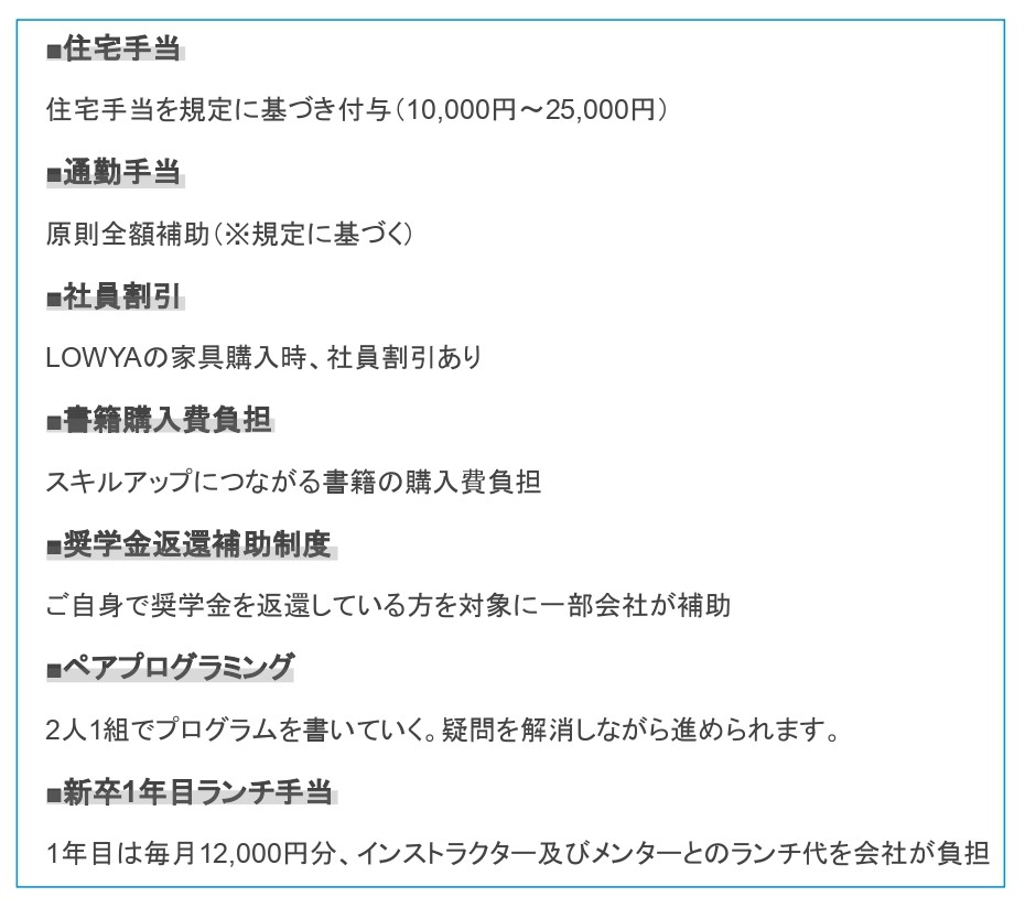 などなど、社会人生活を支援する制度やスキルアップの制度もあります(^^)/