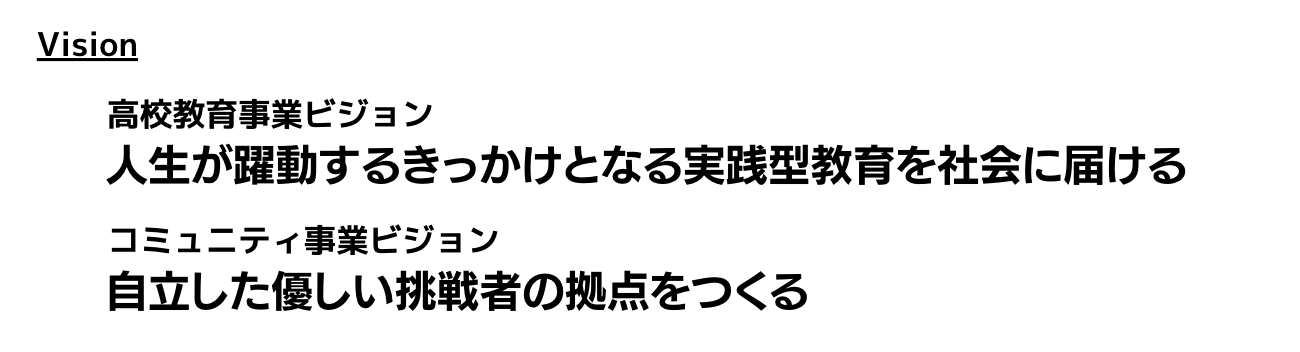 高校教育事業ビジョン : 「人生が躍動するきっかけとなる実践型教育を社会に届ける」