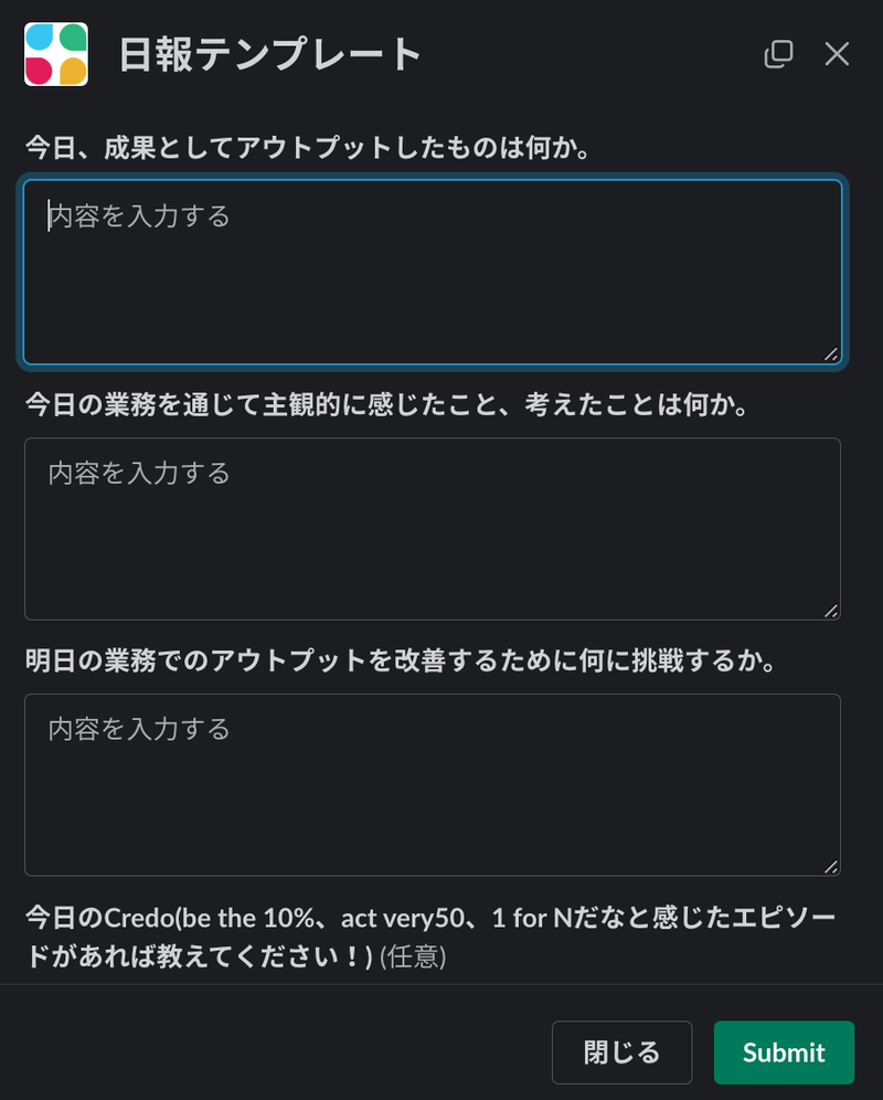 こちらでご紹介したいのは、2番目の「今日の業務を通じて主観的に感じたこと、考えたことは何か。」という項目です。