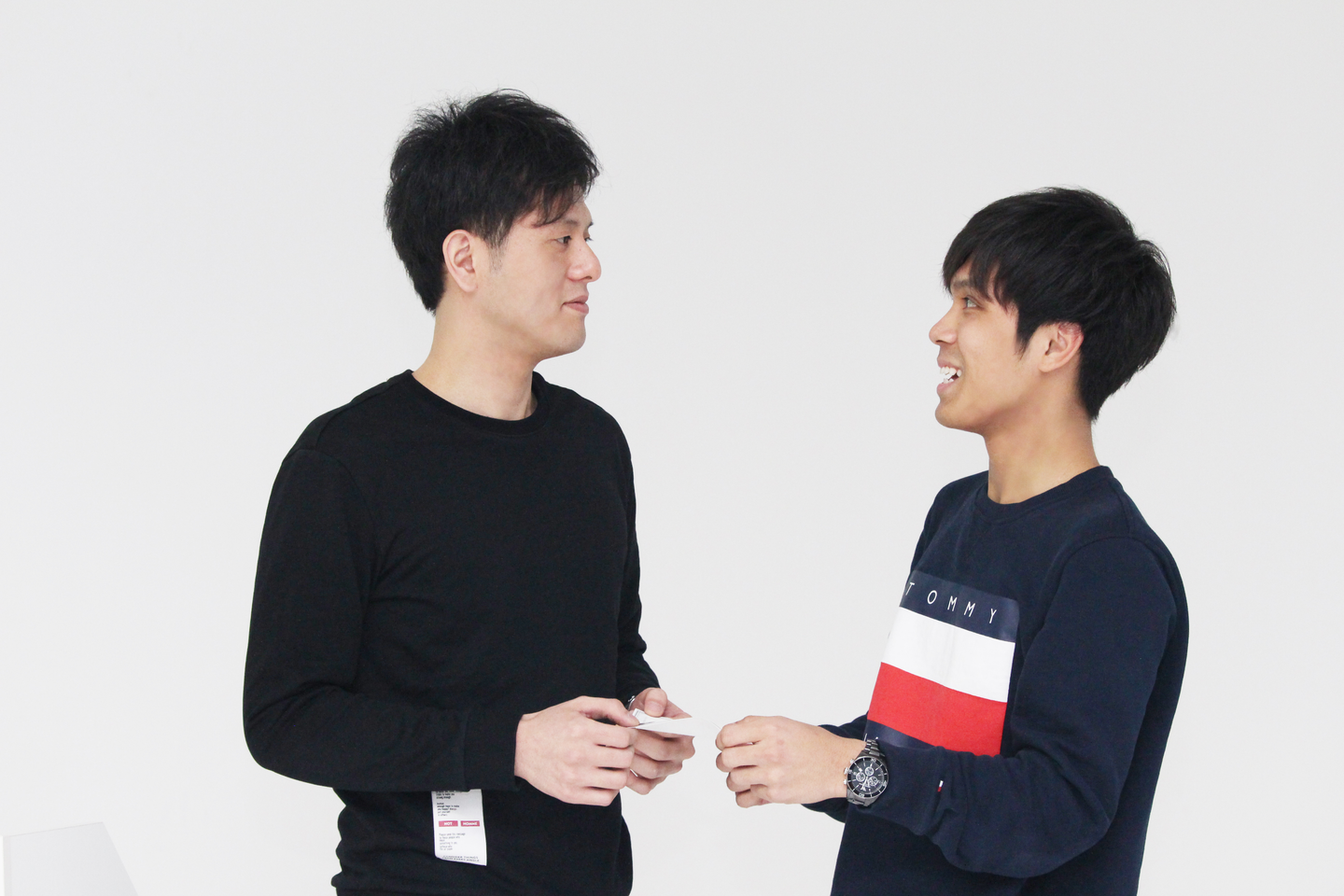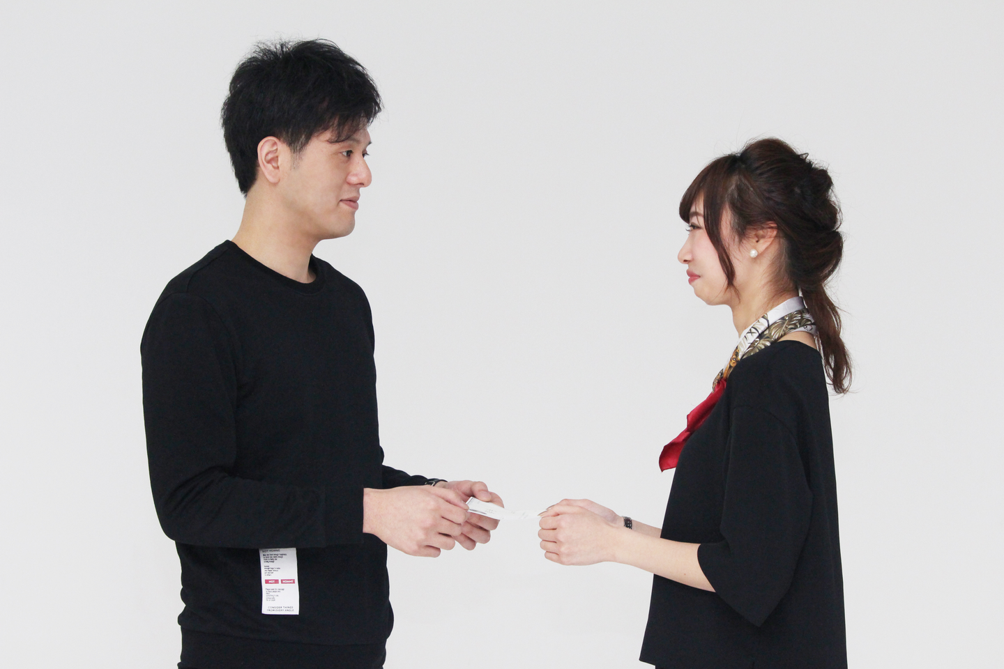 こちらは、ちょっと照れてる初々しい新入社員と、ちょっと硬い表情の社長。