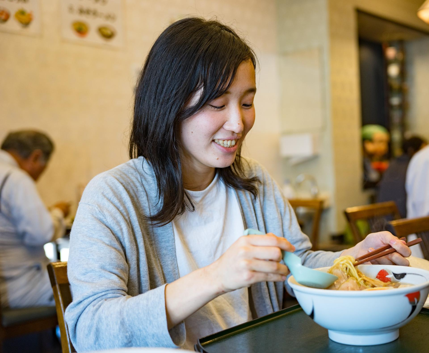 ▲ランチ時間の山崎さん@福島県川俣町