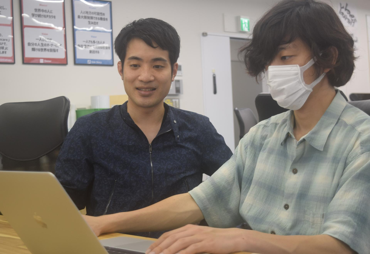 インターン生と一緒に、取材記事の編集に取り組む佐々木さん。