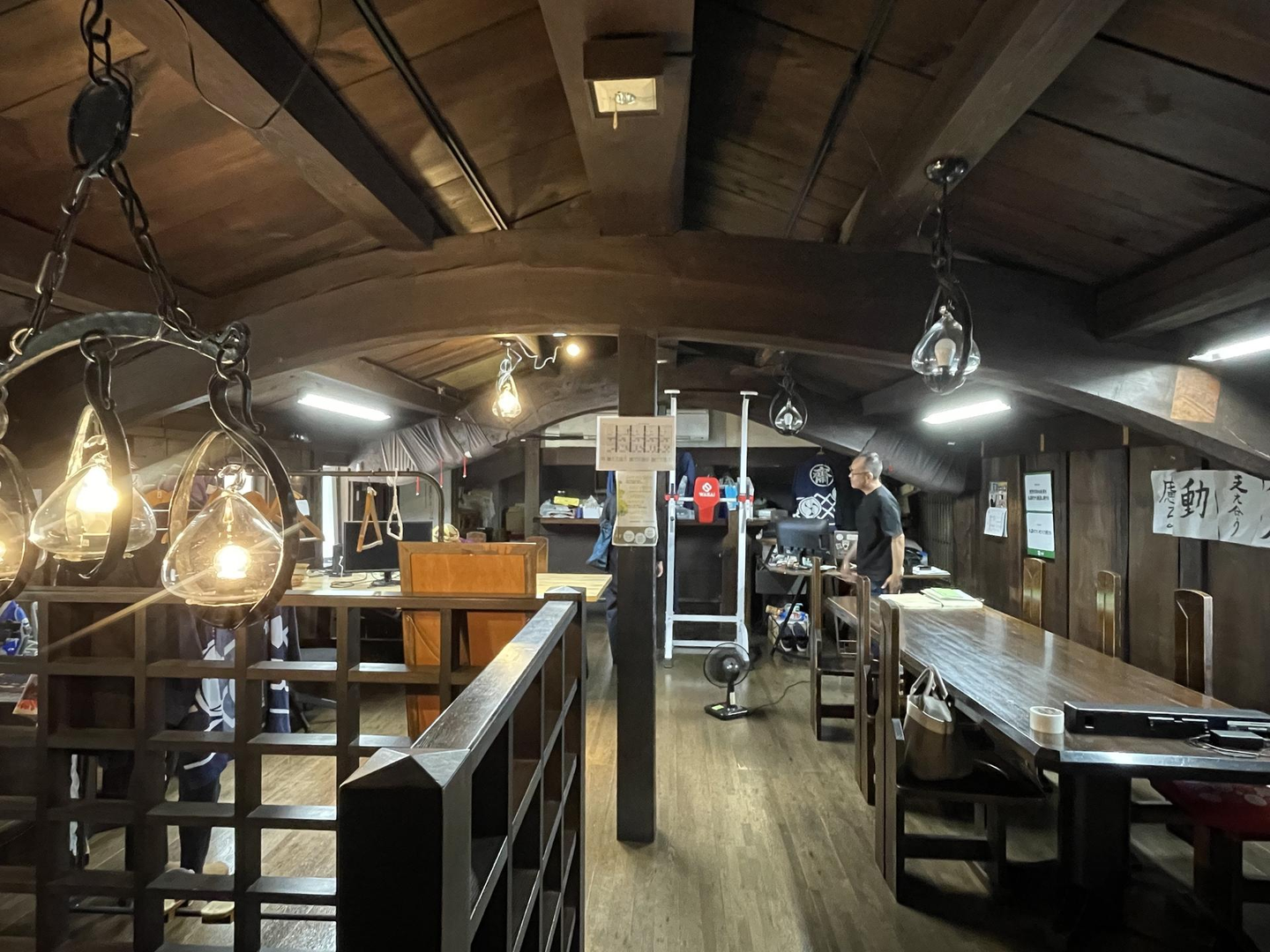 なんと齋理屋敷の蔵の中もオフィスとして使用しているのですが、この蔵は1848年江戸の後期に建設され、170年を超える歴史があります。齋理屋敷が1988年7月に開館する際に若干の手直しはしたものの躯体自体は当時の趣をそのまま残しています。関東大震災、宮城県沖地震、東日本大震災と歴史に残る大きな地震にも耐え、今なお江戸の風情を残してくれています。建物の頑丈さの理由は2本の松の曲がり梁。この梁を使うために建物の大きさが決まったとも言い伝えられているほどこだわり抜かれた素材です。