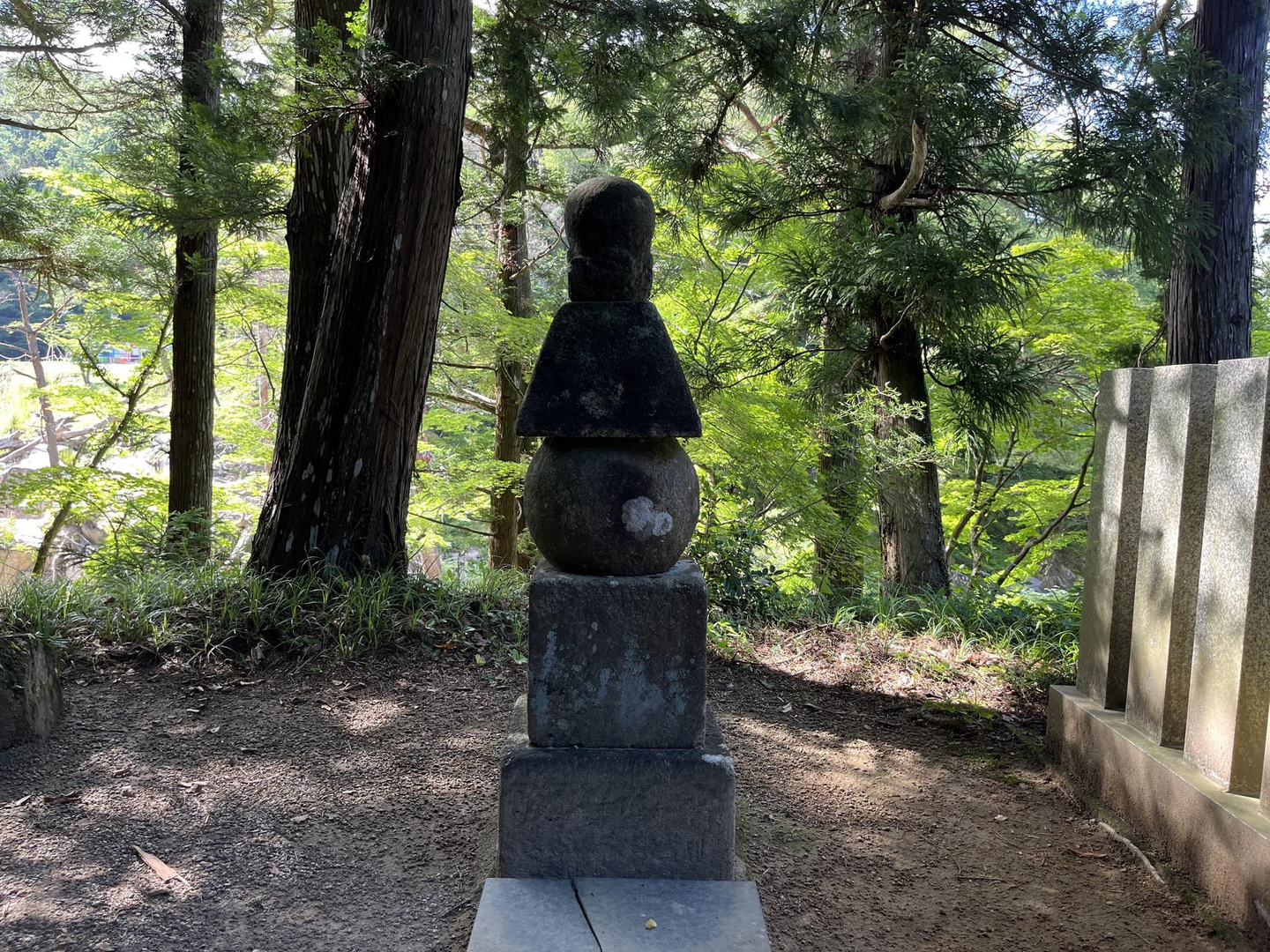 本堂にお参りをして裏手に歩いていくと五輪の塔があります。一番上の石を「軽くなれ」と念じながら3回ひねると簡単に持ち上がり、逆に「重くなれ」と念じながら3回ひねると重くて持ち上げることができない、という不思議な石です。重さの違いが感じられた場合、不動様に願ったことが早く叶うと言い伝えられているそうですよ。