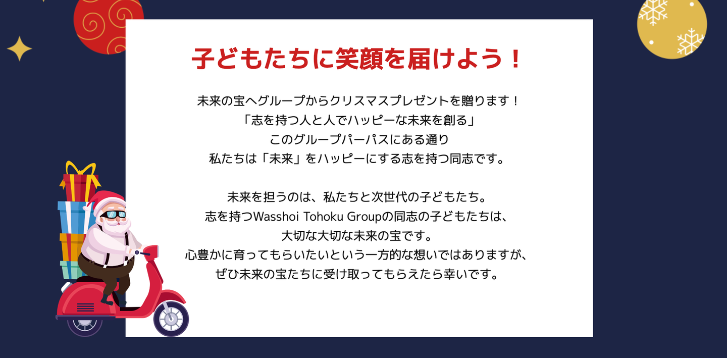 「クリスマスに子どもたちに笑顔を届けよう!」