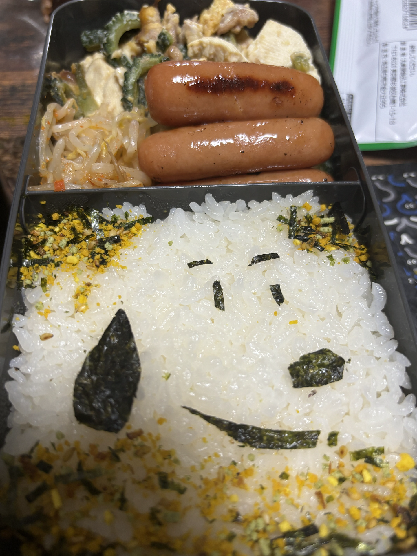 お弁当は毎日自分で前日に作る派。デスクで食べながら「食べることに全集中」するのが藤田さん流です。合間には奥さんへLINEを送り、子どもの写真を見て癒やされるひとときも。